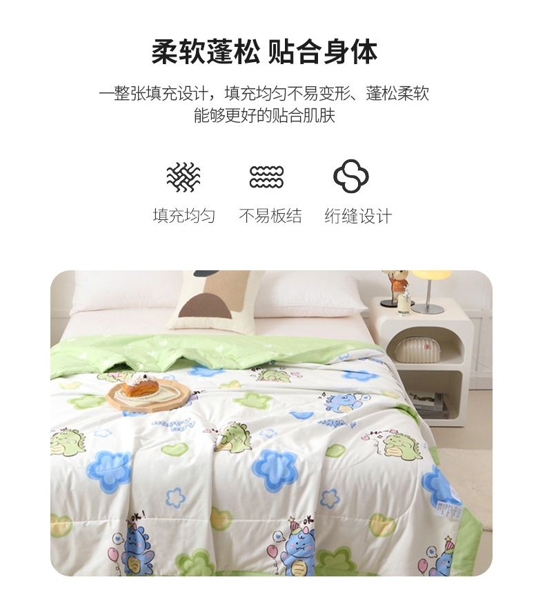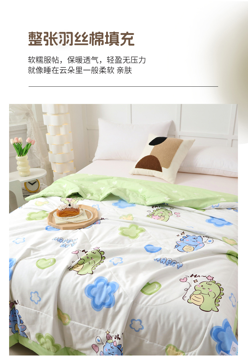 商品名称:瑜珠 2025新款双面全棉印花夏被夏凉被空调被子 恐龙告白