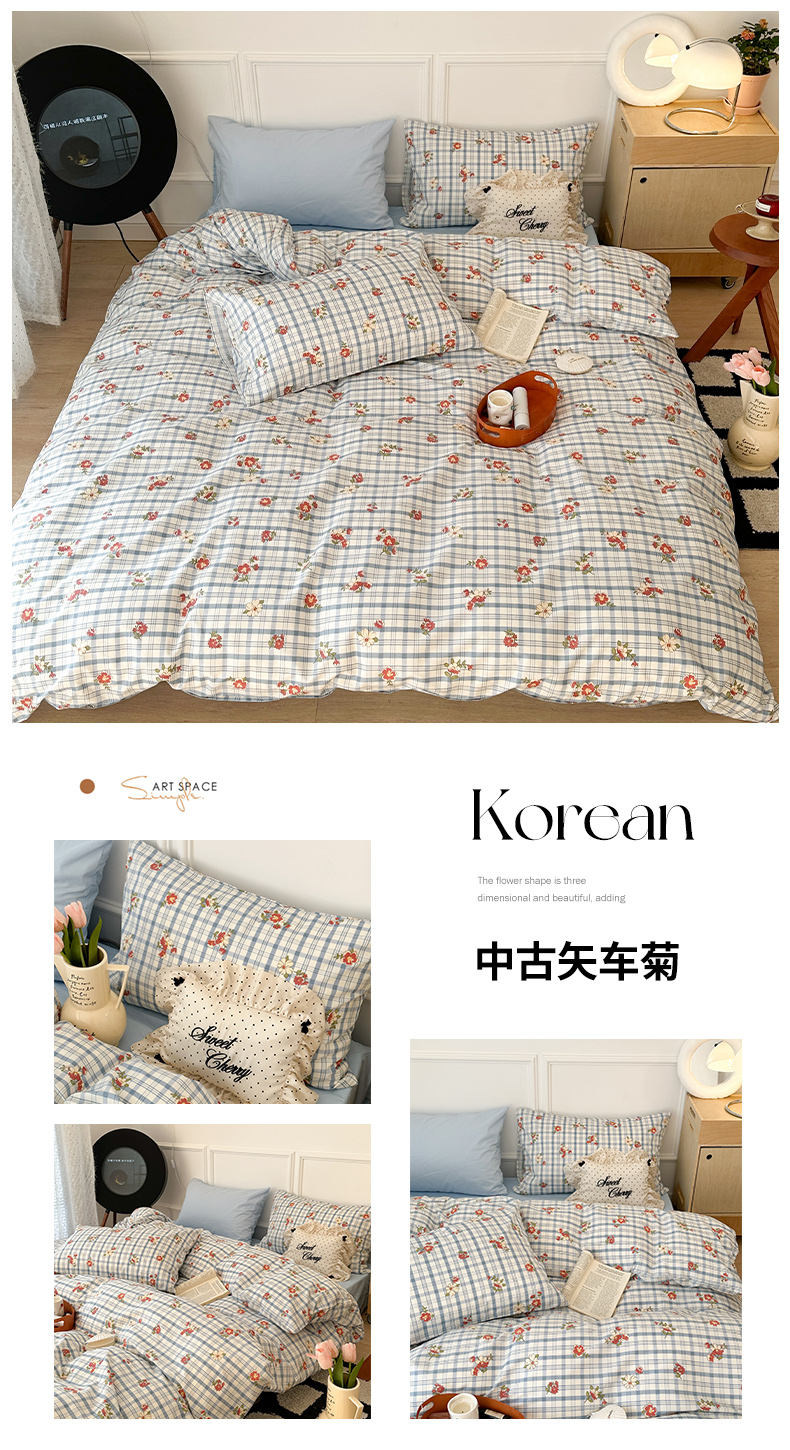商品名称:昔可家纺 2024新款韩式混搭系列四件套 中古矢车菊