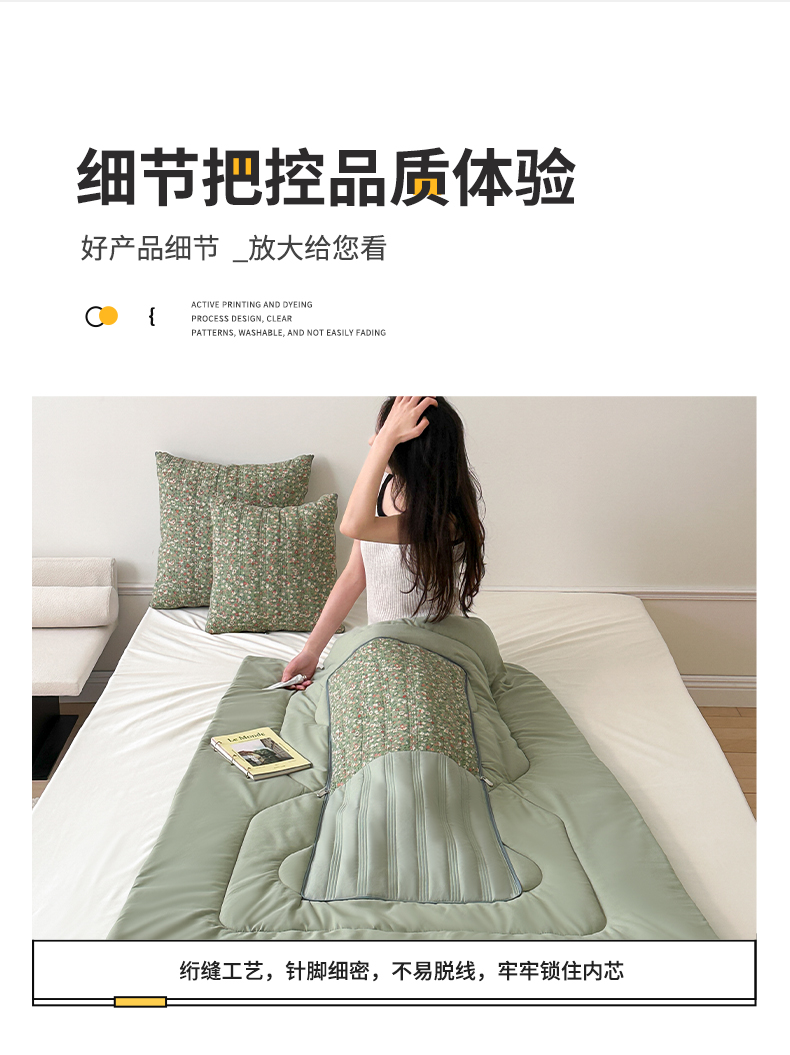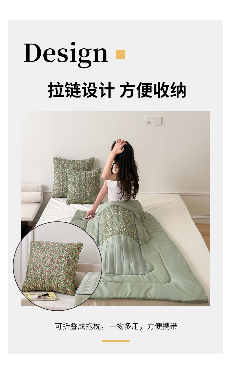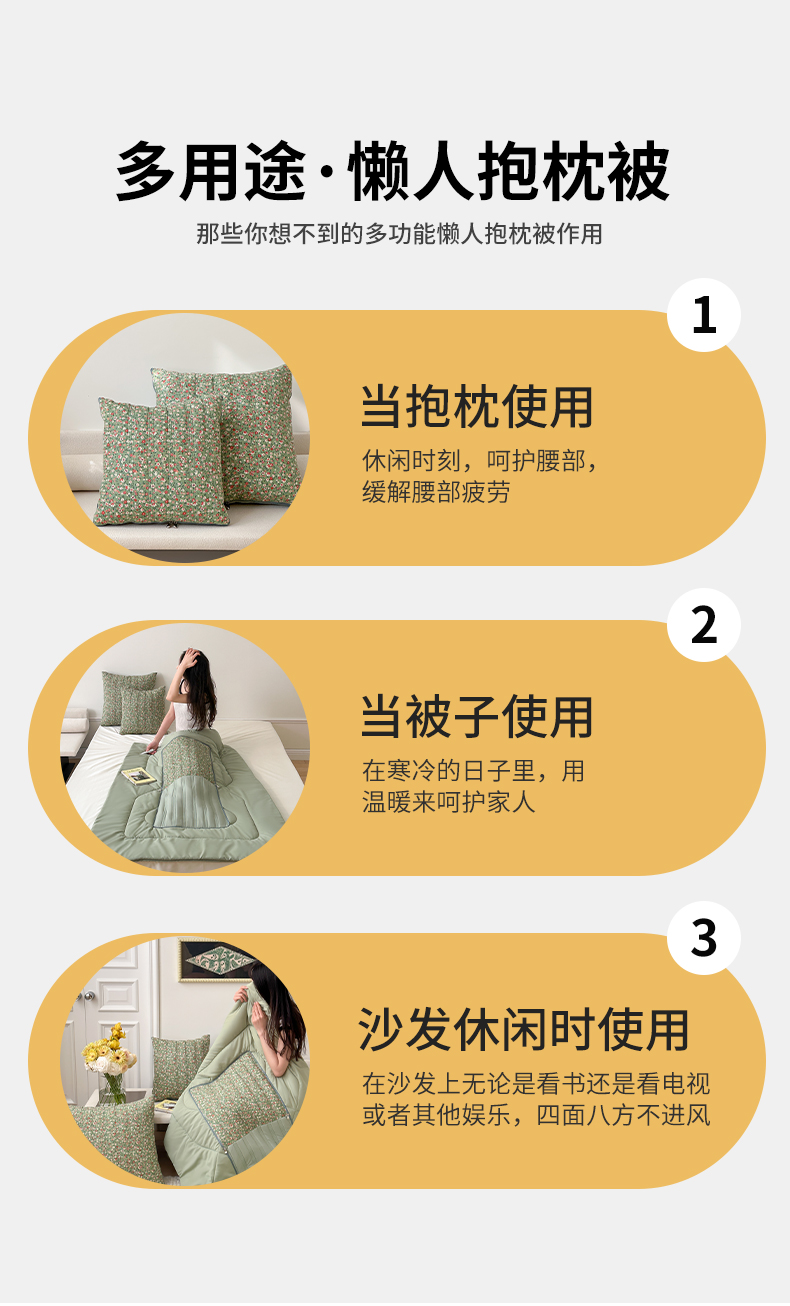 (总)多米家居 2025新款多功能印花嗖系抱枕被,暗苔绿,丹宁蓝,矿石黑,小鸡黄,杏仁咖,云水灰