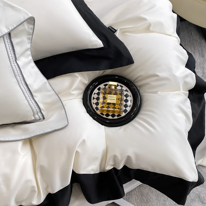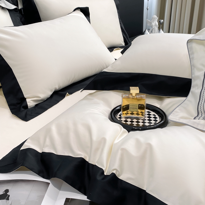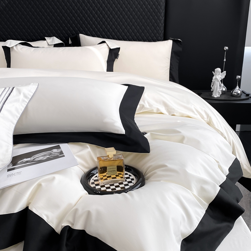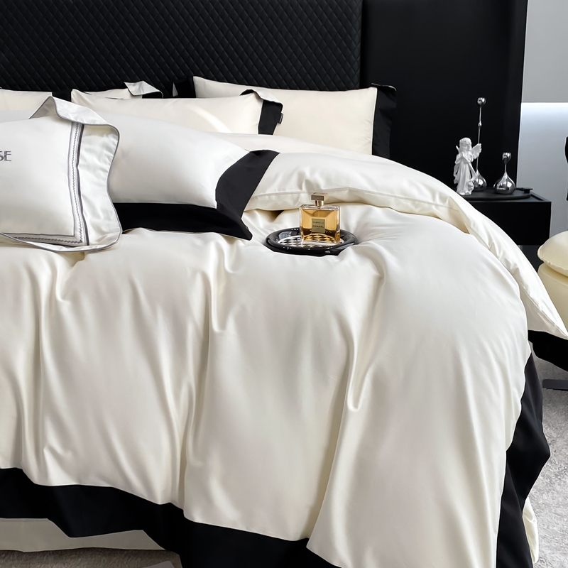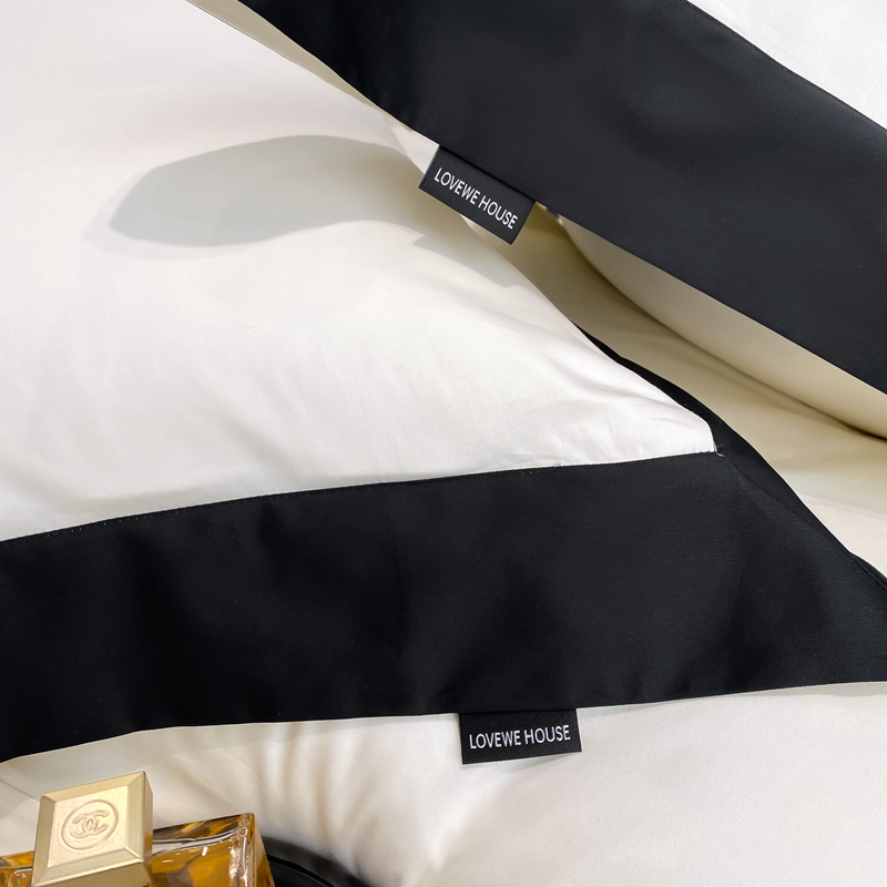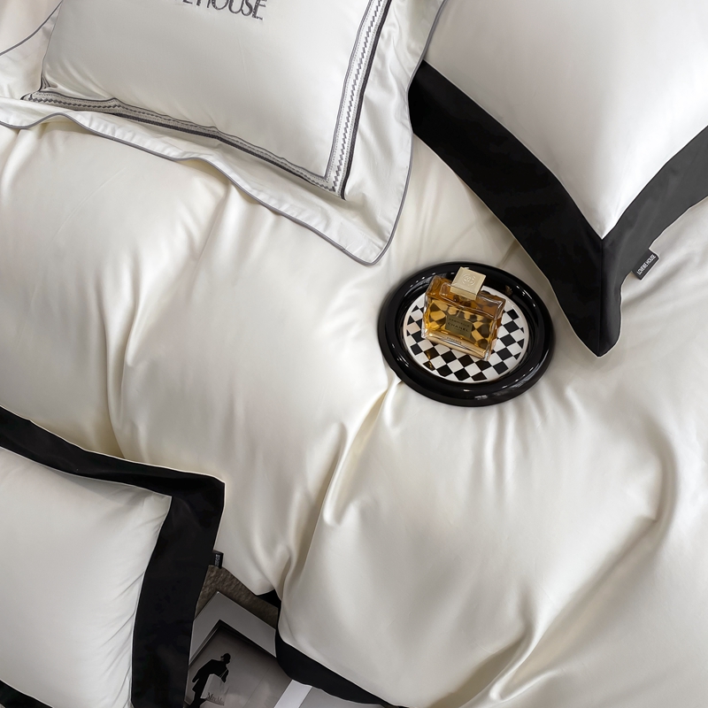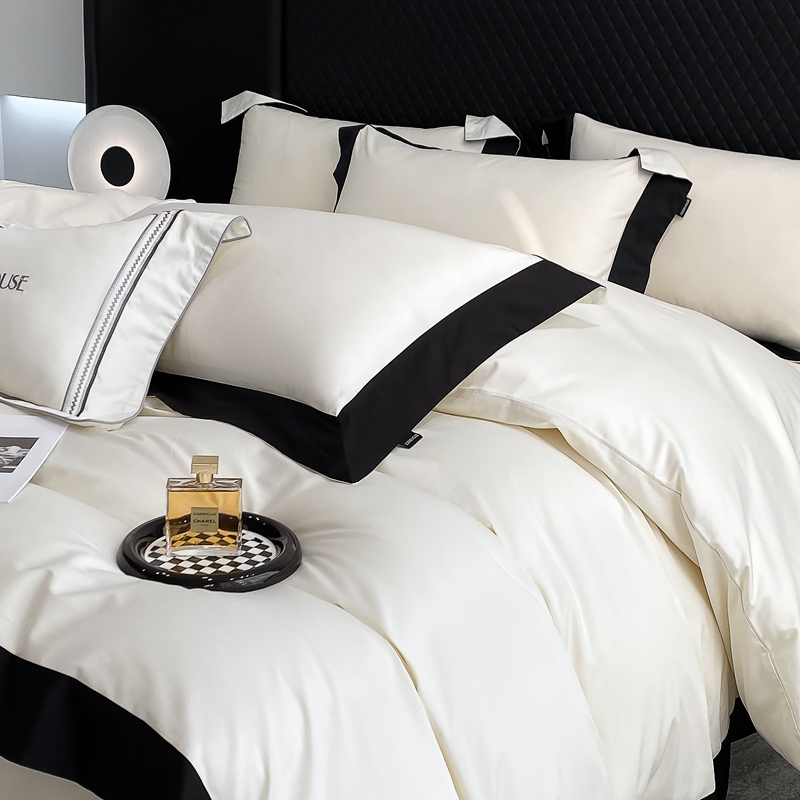 商品名称:若未家居 2025新款50S长绒棉纯色撞色简约拼角款套件-洛斐 奶昔白