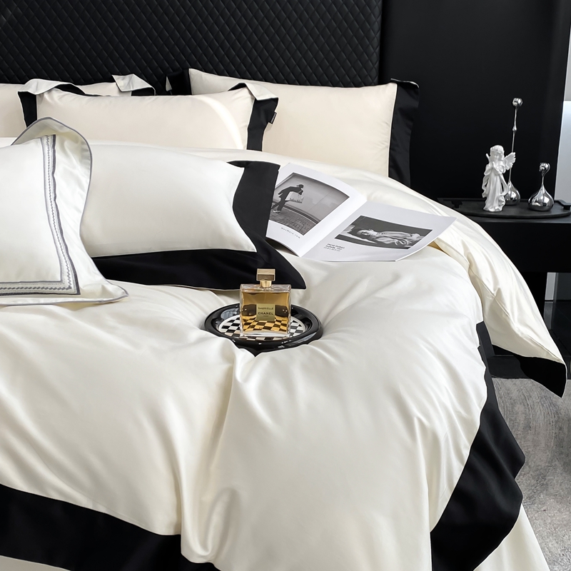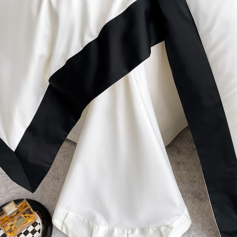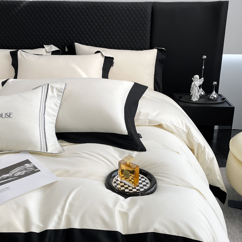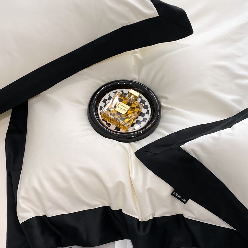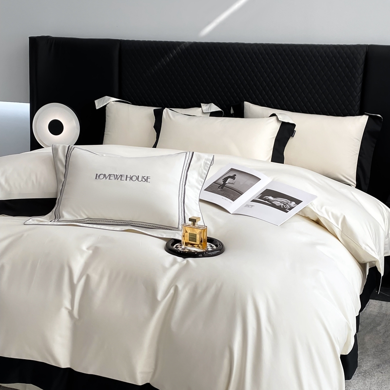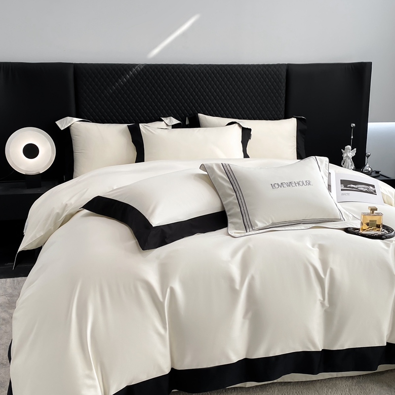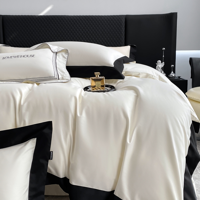 商品名称:若未家居 2025新款50S长绒棉纯色撞色简约拼角款套件-洛斐 奶昔白