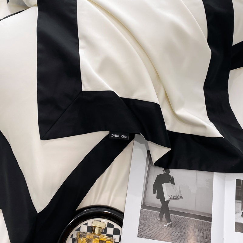 若未家居 2025新款50S长绒棉纯色撞色简约拼角款套件-洛斐 奶昔白