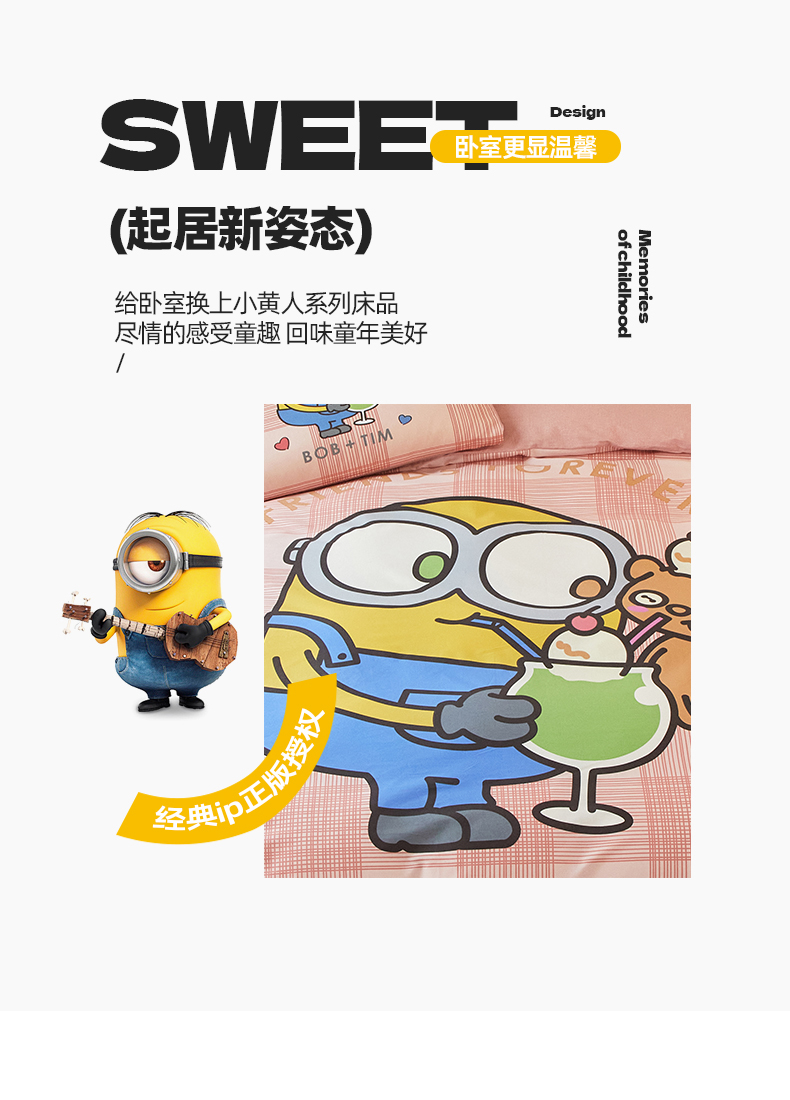 当前位置: 91家纺网 > 商品网购 > 床品套件 > 四件套 > 全棉活性四件套 > 鑫帝家居 2025新款全棉活性印花四件套---小黄人系列 小黄人鲍伯