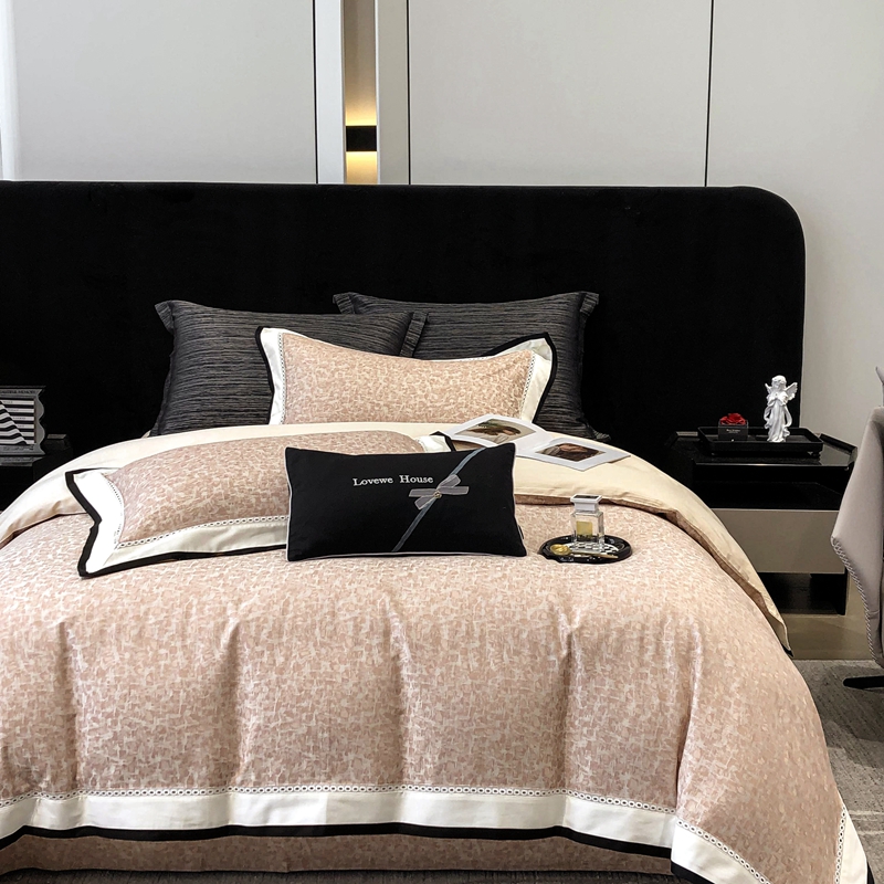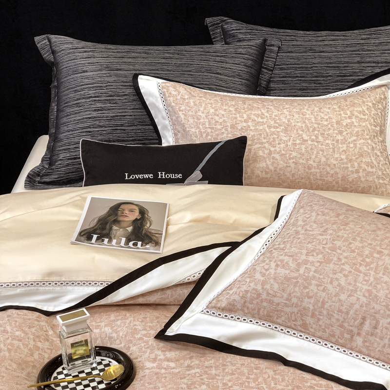 (总)若未家居 LOVEWE HOUSE 2026新款100S数码印花轻奢风四件套-波澜,波澜 爵士灰,波澜 公主粉,波澜 贝拉橘