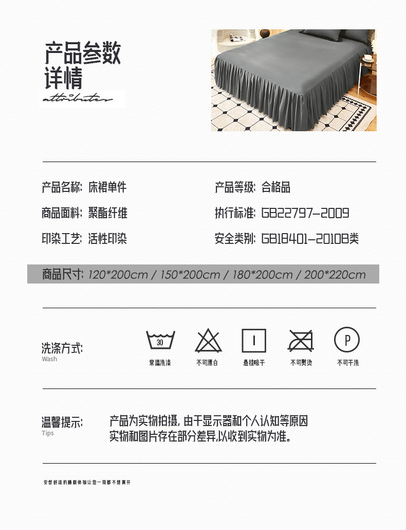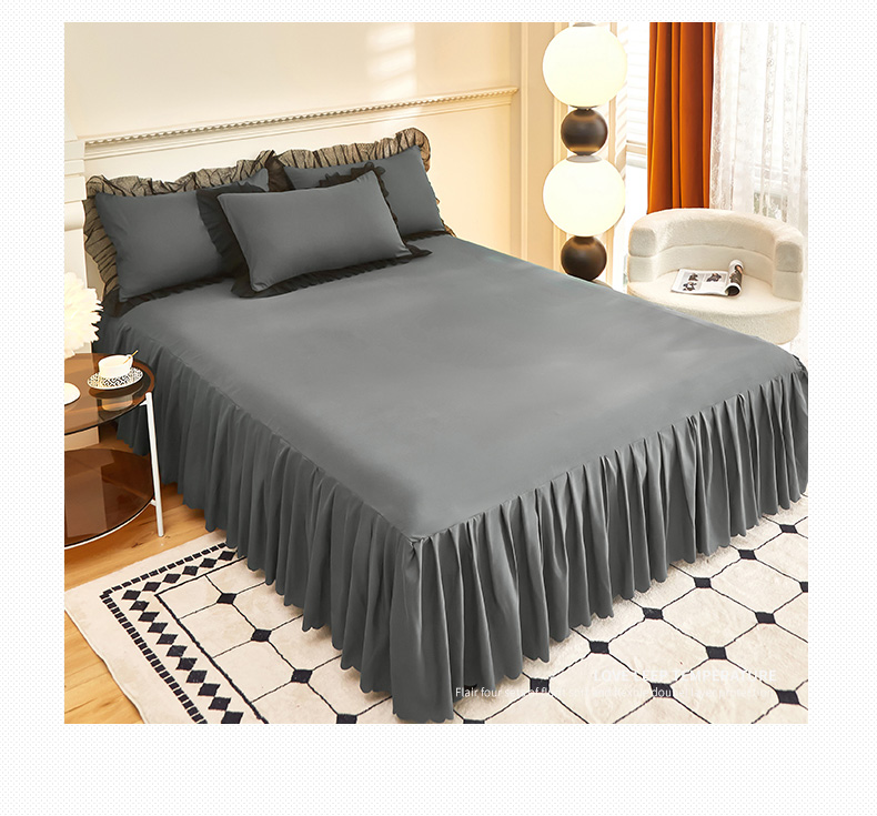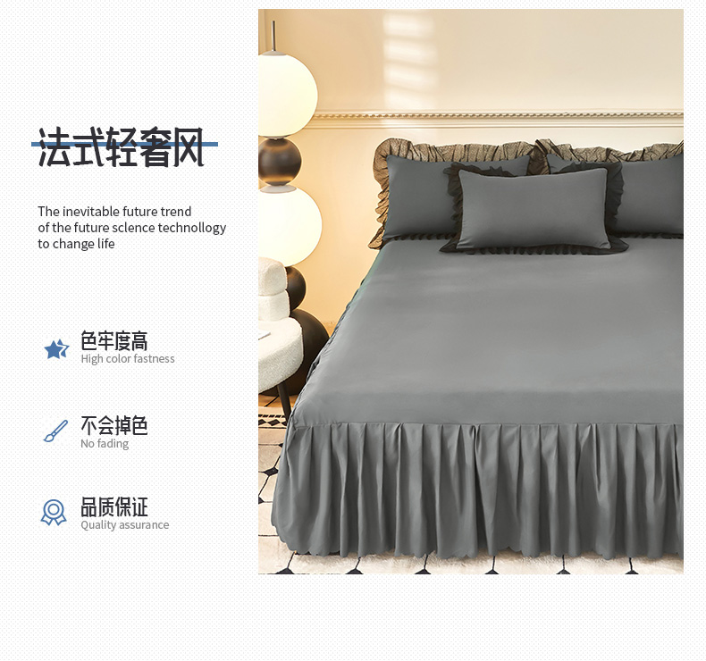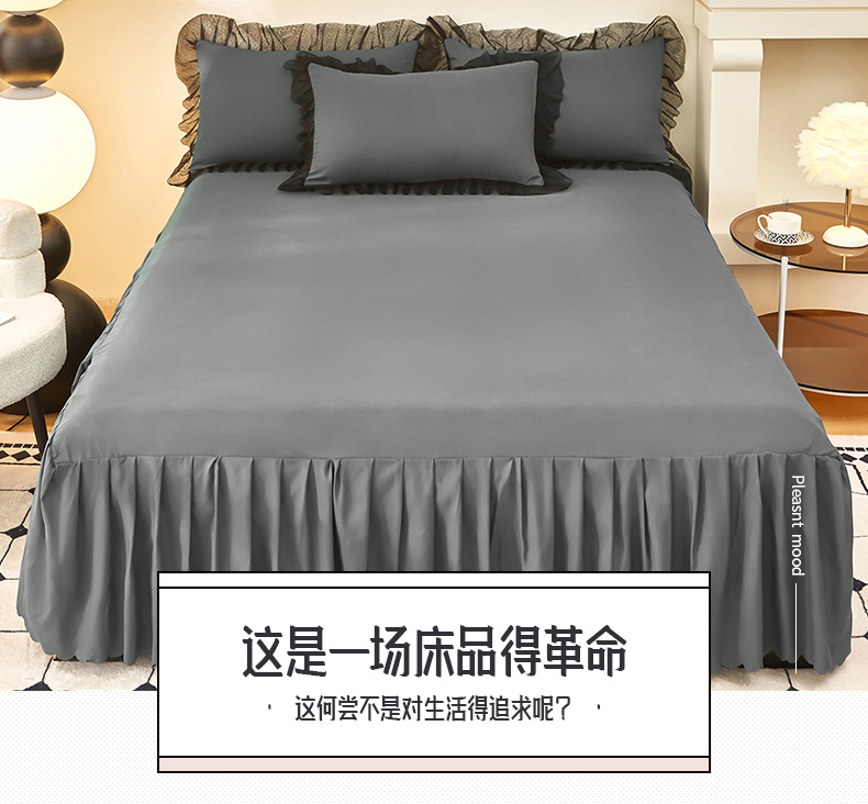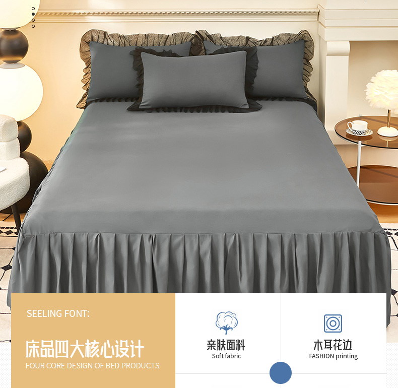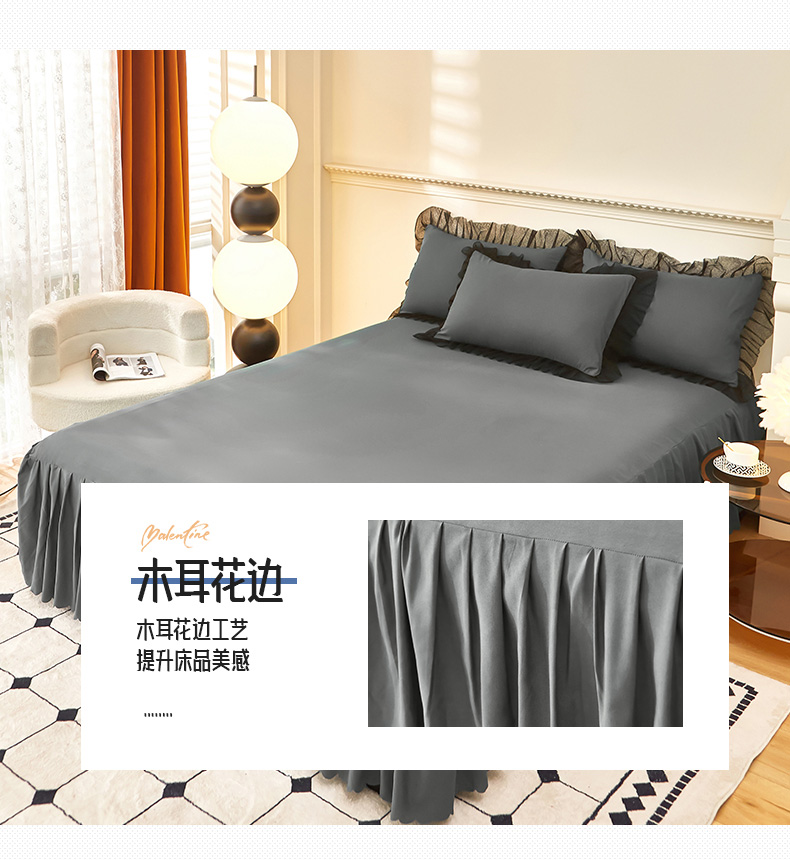 商品名称:莉莉安家纺 2025新款亲肤磨毛木耳花边床裙款单床裙 爱丽丝-至尊灰
