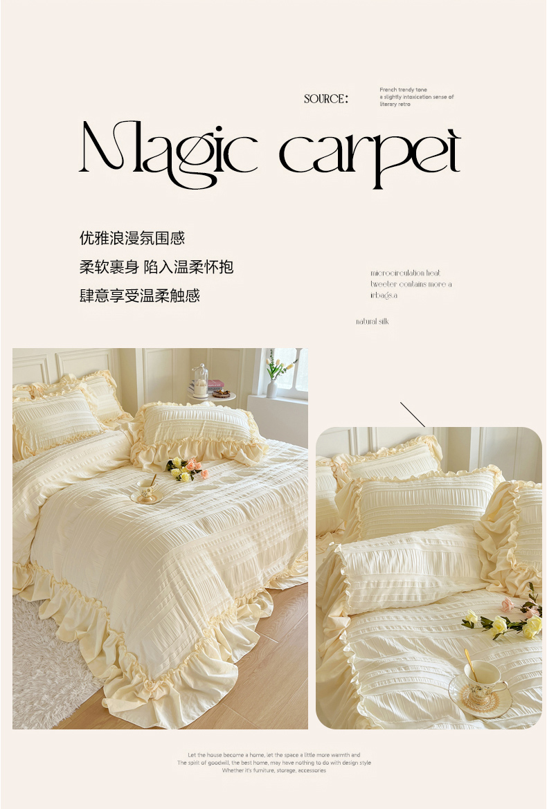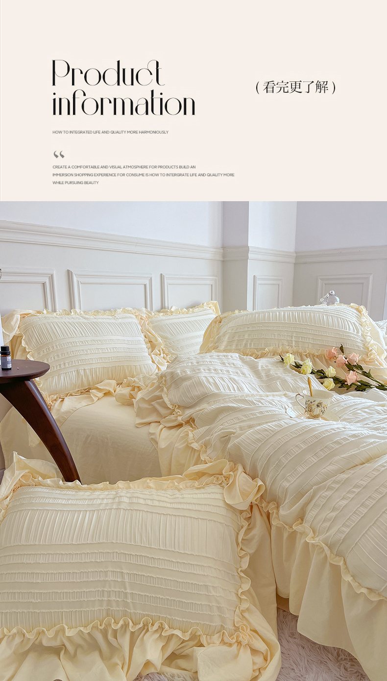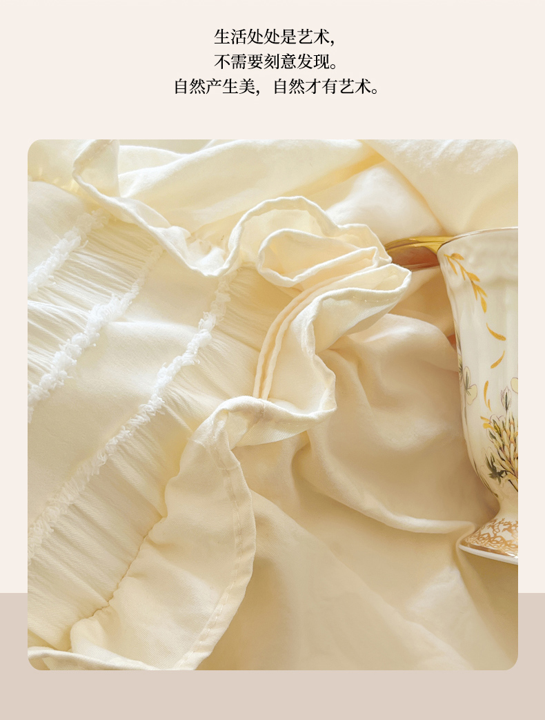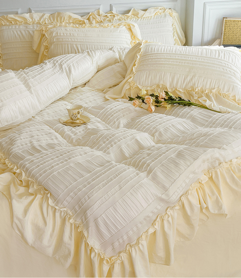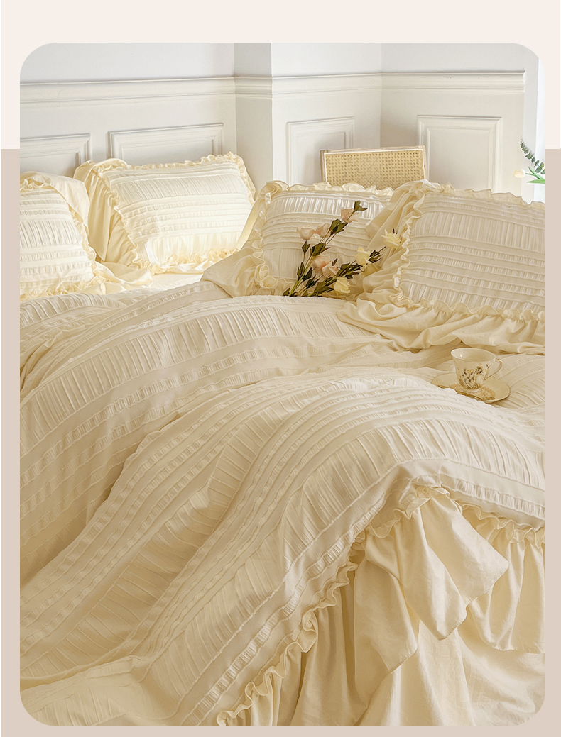 顾里家纺 2024新款韩系大花边泡泡纱套件 象牙黄