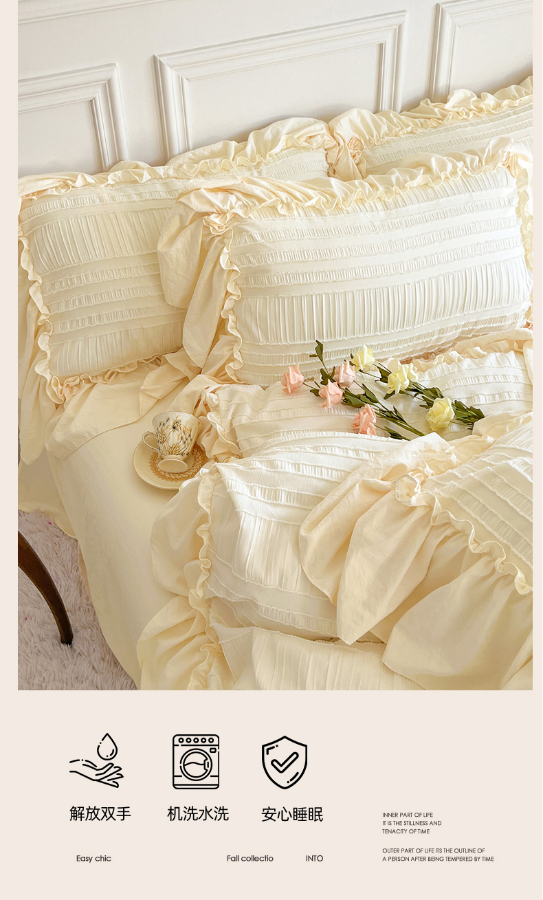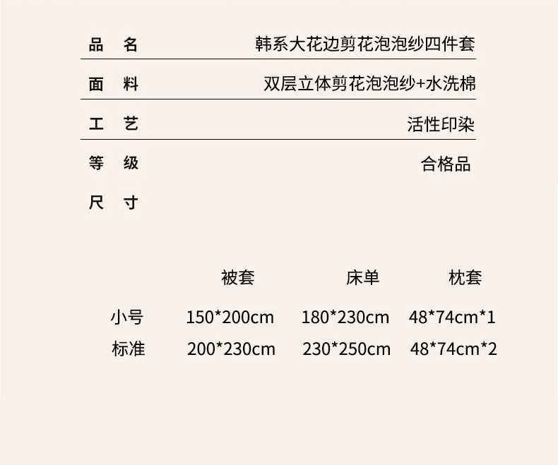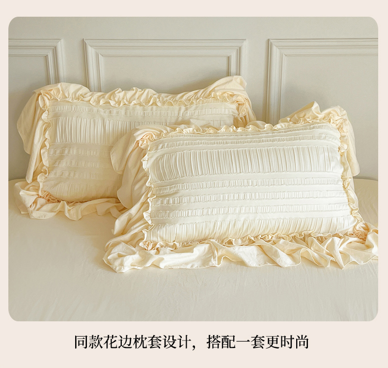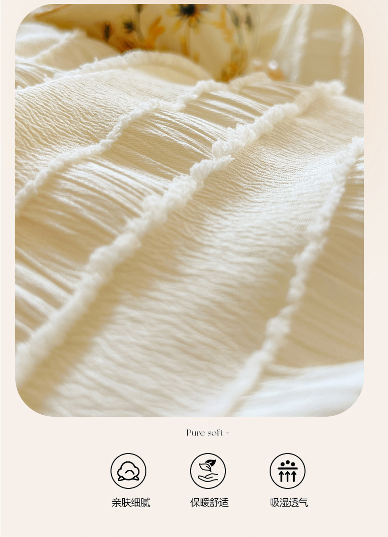 商品名称:顾里家纺 2024新款韩系大花边泡泡纱套件 象牙黄