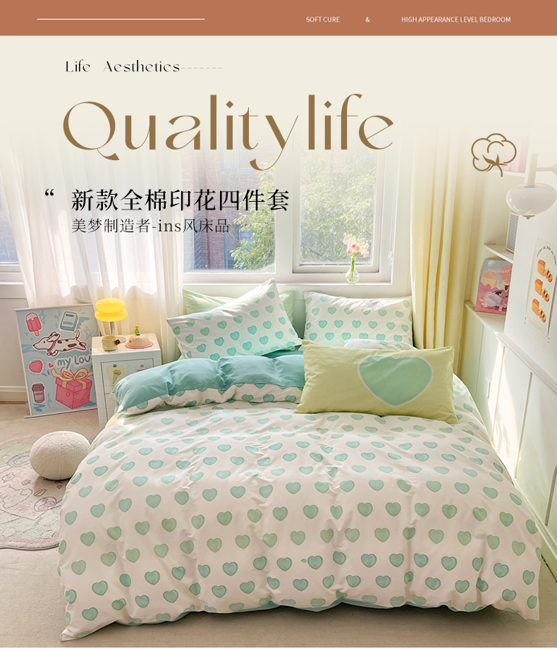 佰亿莱 2024新款13372全棉印花四件套-风格二 恋爱心语
