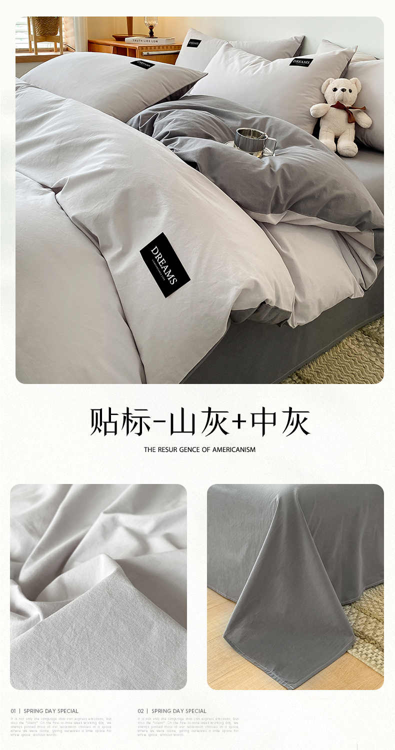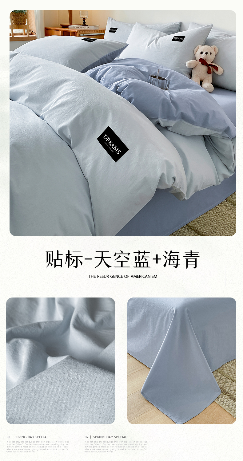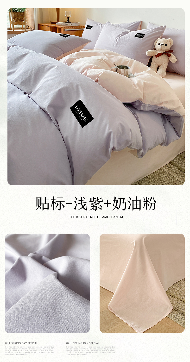 商品名称:(总)如约 2025春夏新品全棉13372纯色双拼四件套
