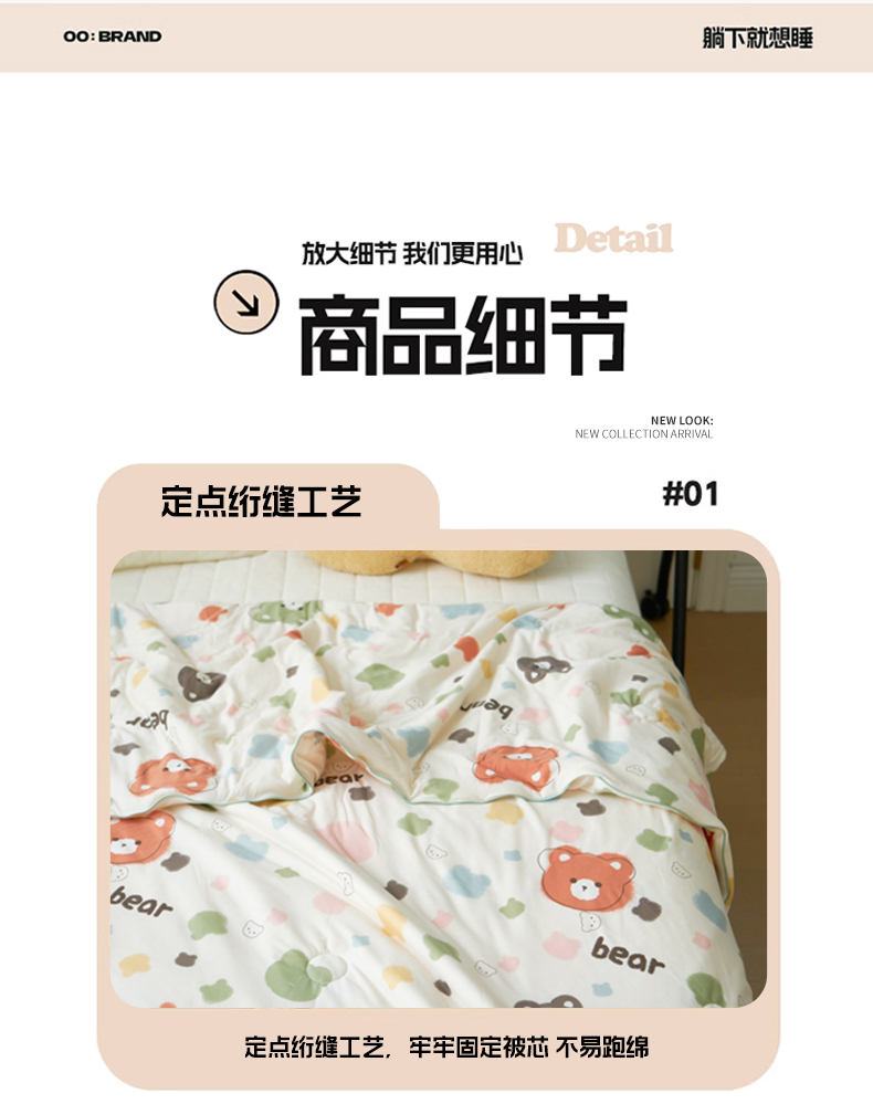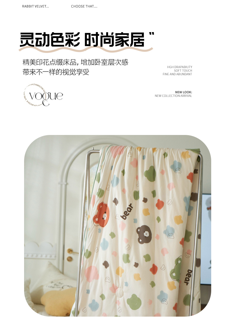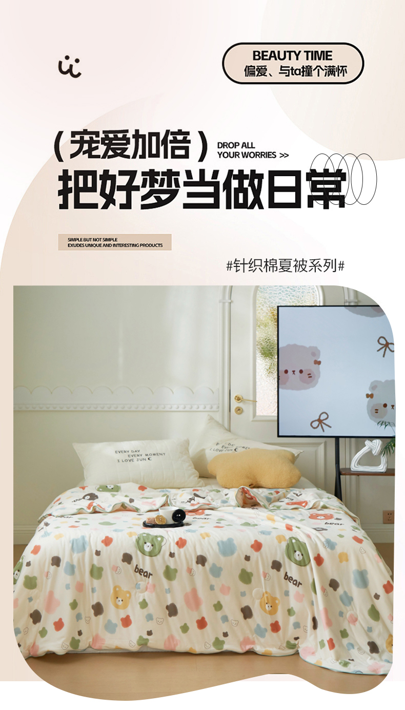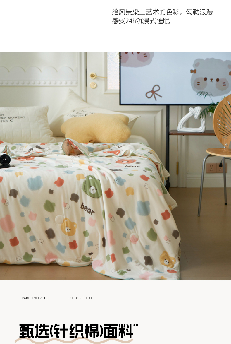 商品名称:米菲 A类生态锦棉牛奶针织棉大豆夏被(四季款) 缤纷小熊