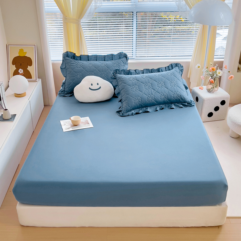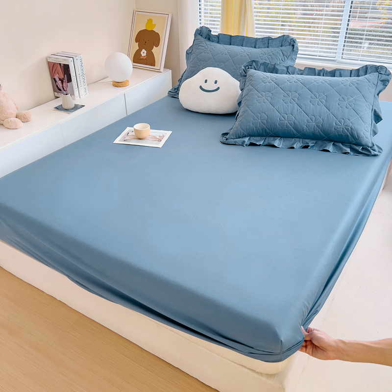 情煊家纺 2024新款全棉纯色床笠 灰蓝