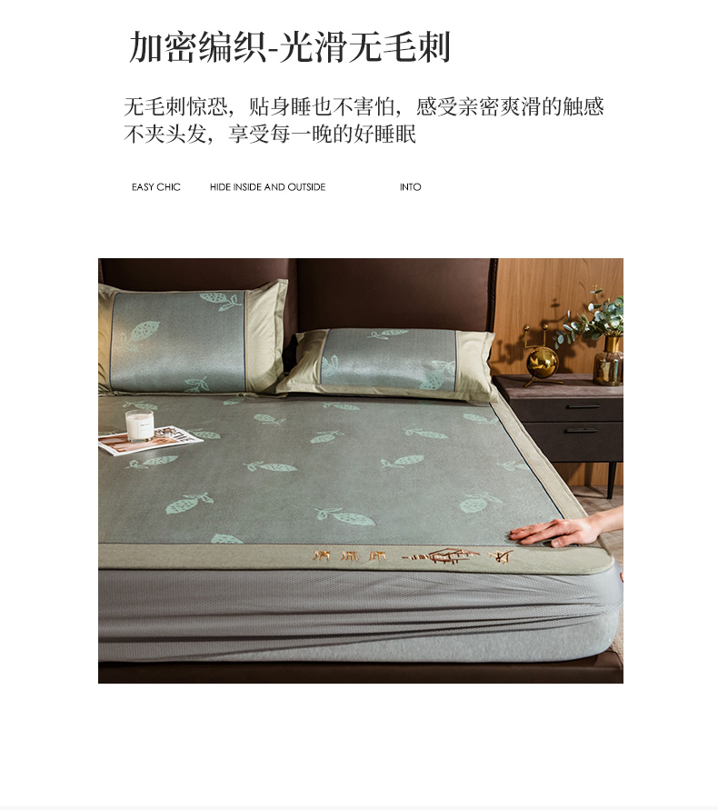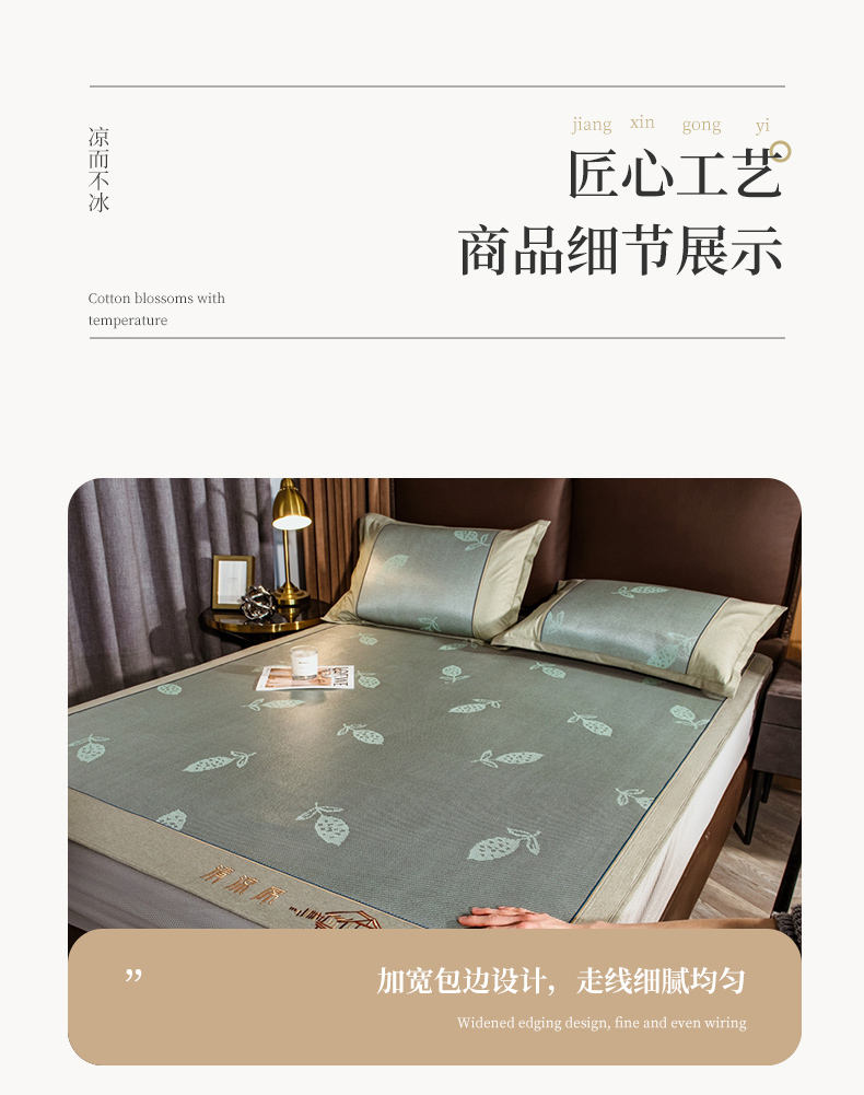 当前位置: 91家纺网 > 商品网购 > 床上用品 > 凉席 > 其他凉席 > 全季家居 2024新款加厚加密宽边刺绣提花冰藤凉席 秋叶-水绿(床笠款)