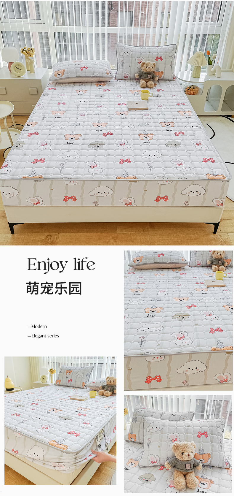 恒尚居 2024新款小清新印花水洗棉大豆夹棉床笠 萌宠乐园