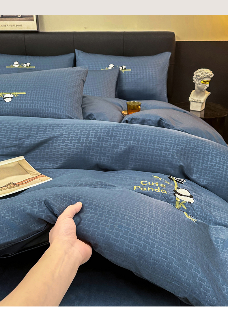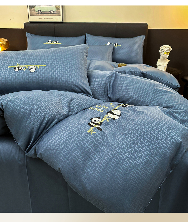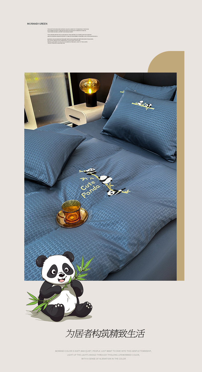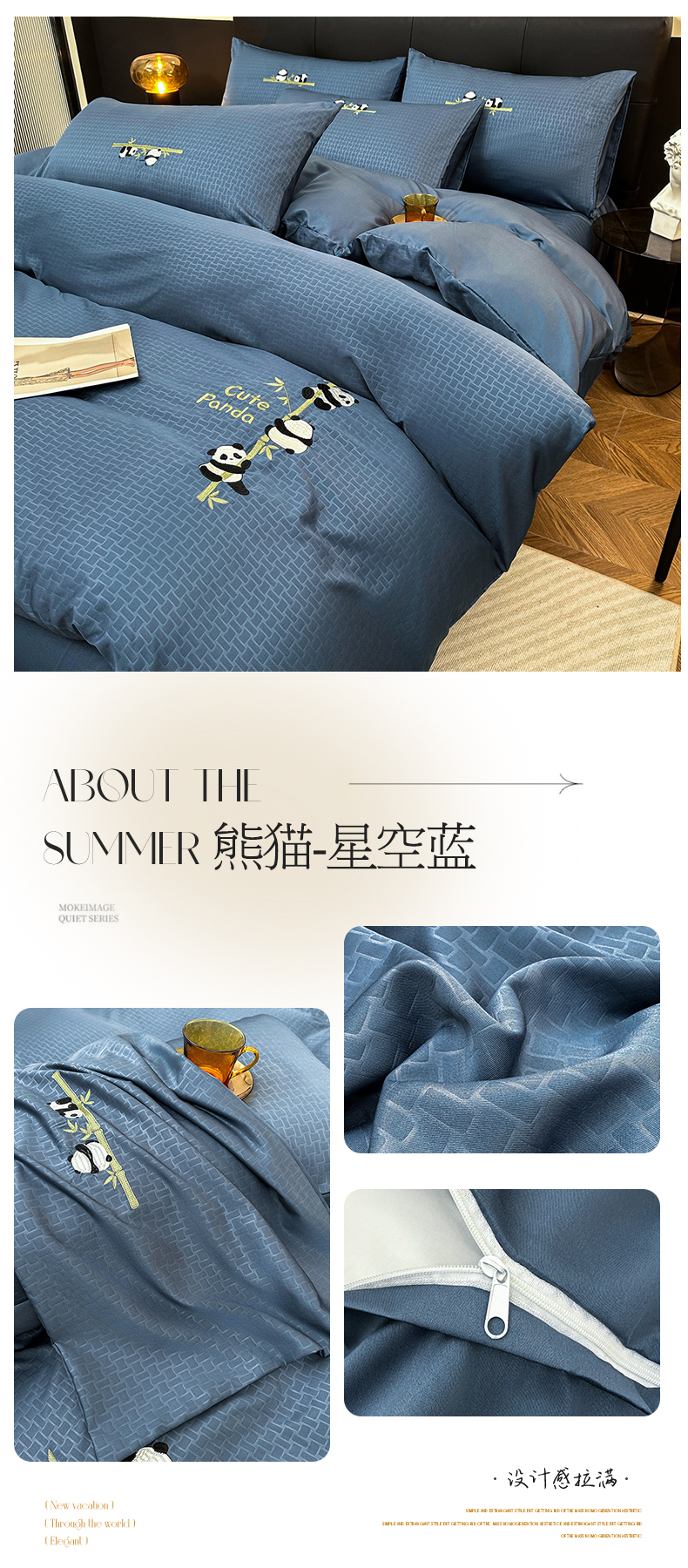 古吉梦 2024新款水洗真丝提花四件套--熊猫 星空蓝