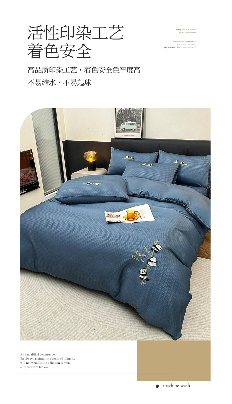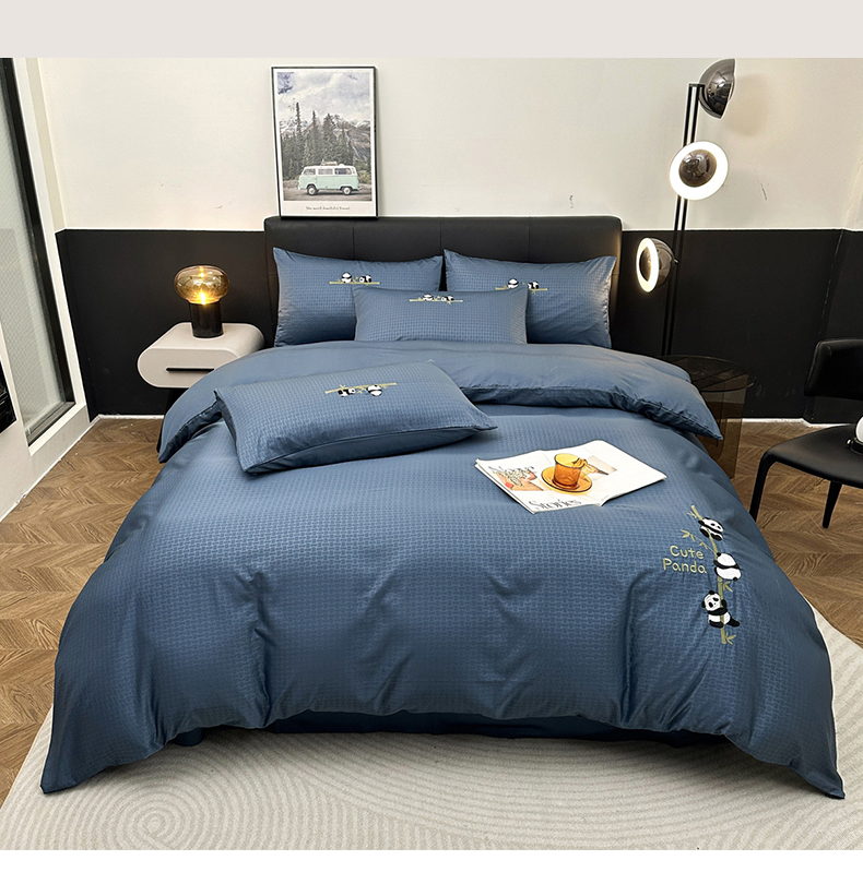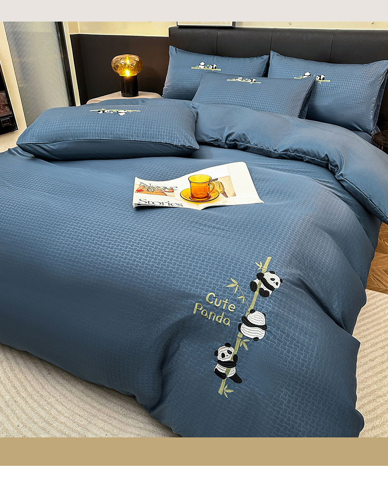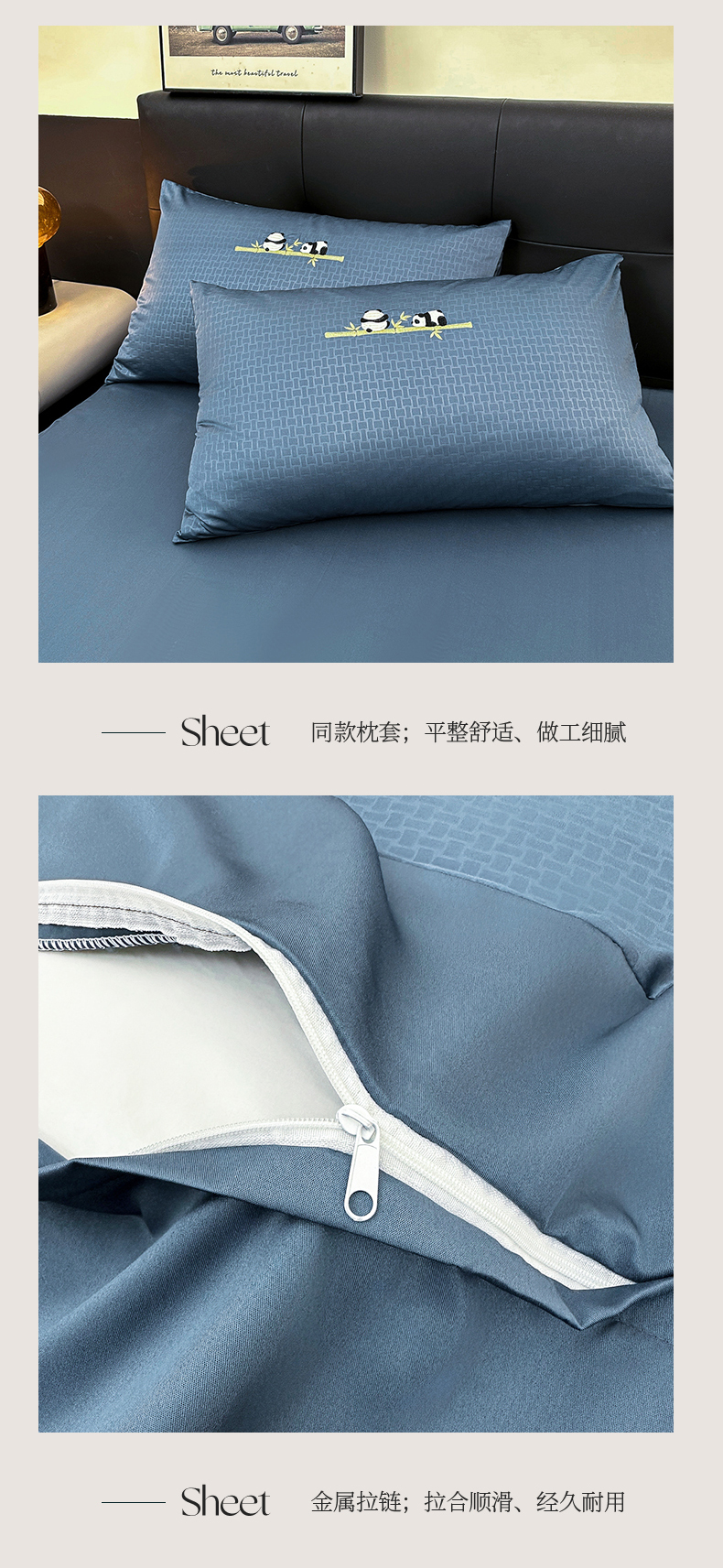古吉梦 2024新款水洗真丝提花四件套--熊猫 星空蓝