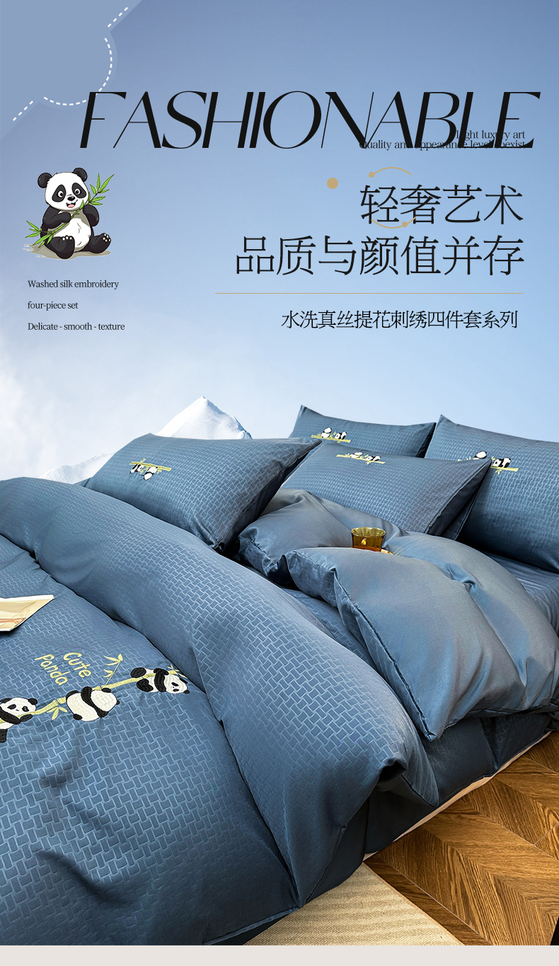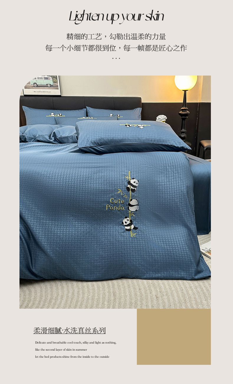 商品名称:古吉梦 2024新款水洗真丝提花四件套--熊猫 星空蓝