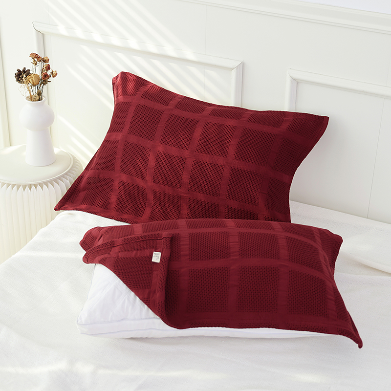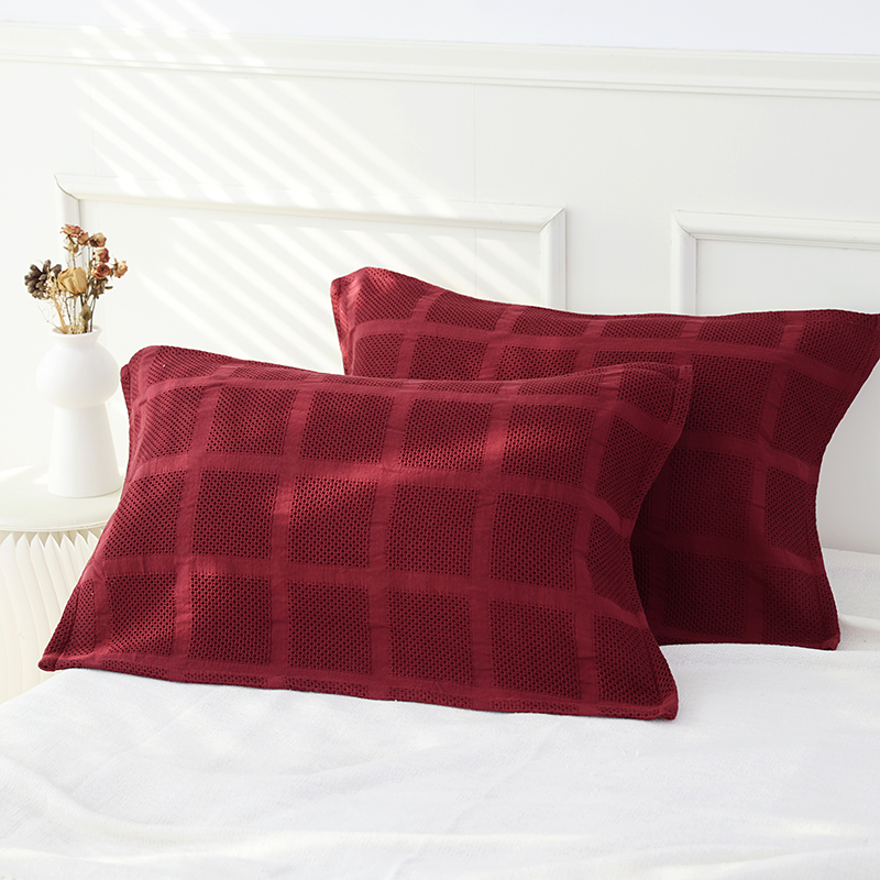 • 91家纺网 家纺一手货源 找家纺 朴尔毛巾被2024年新品全棉质朴方格风立体华夫格透气纱布枕巾 方格华夫格-酒红枕巾50*80cm