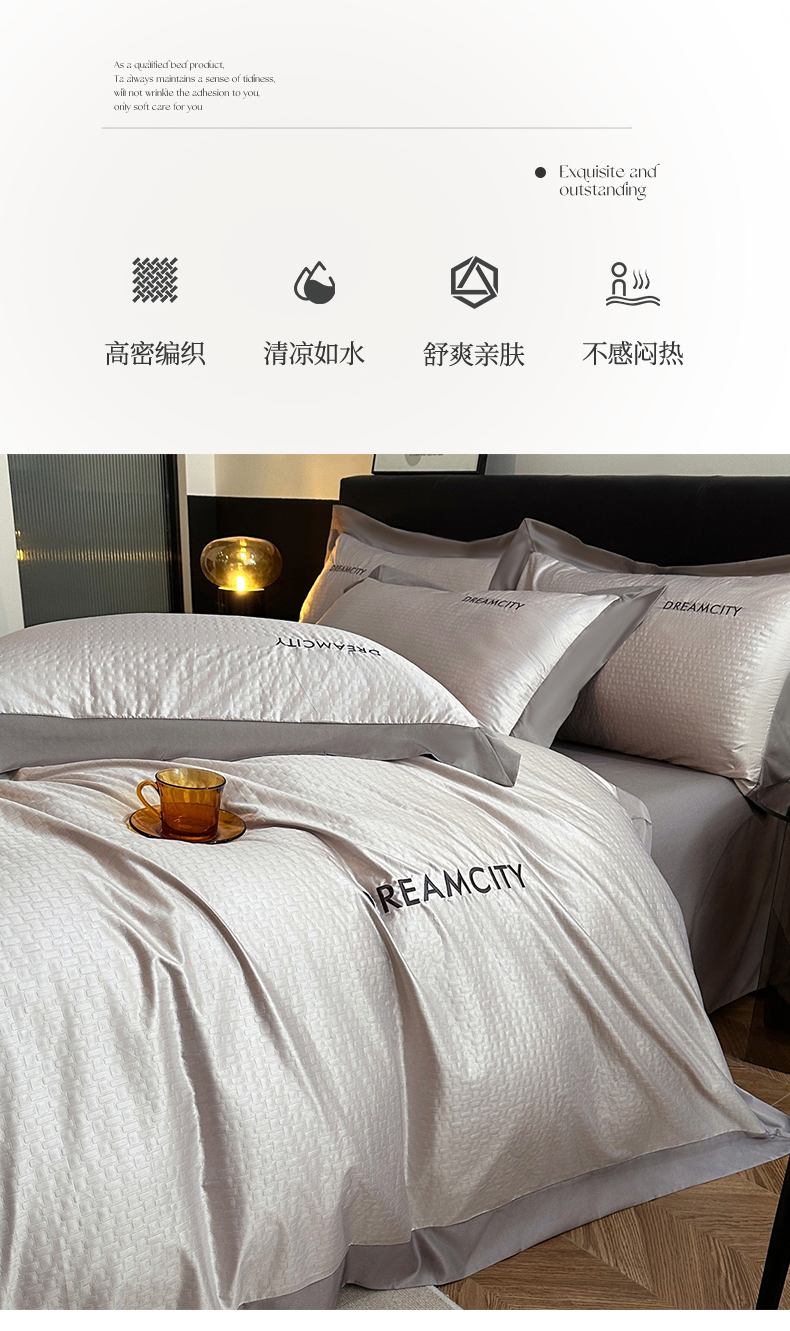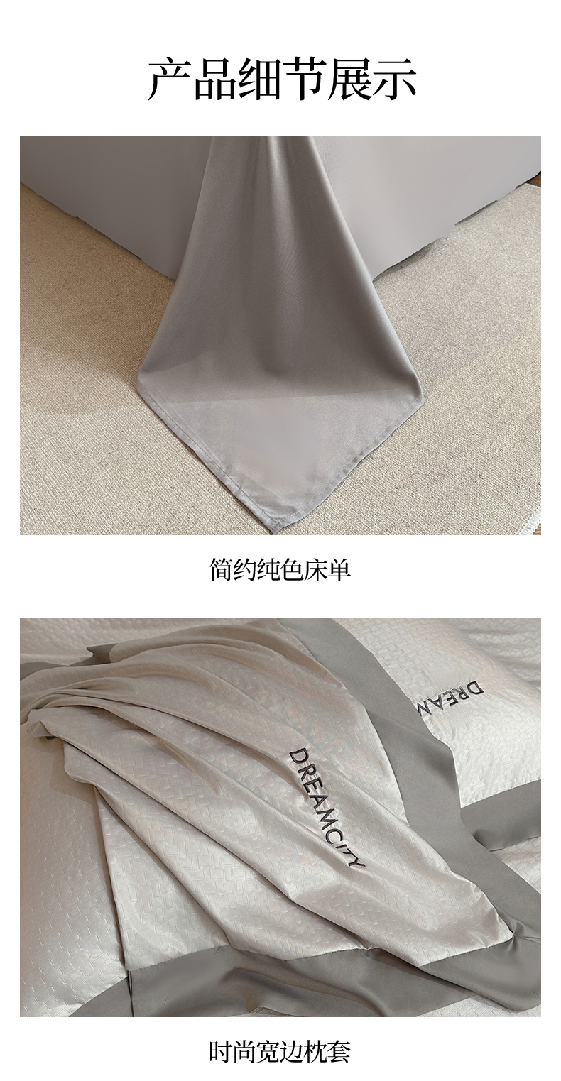商品名称:古吉梦 2024新款水洗真丝提花四件套--迪梦 山灰+中灰