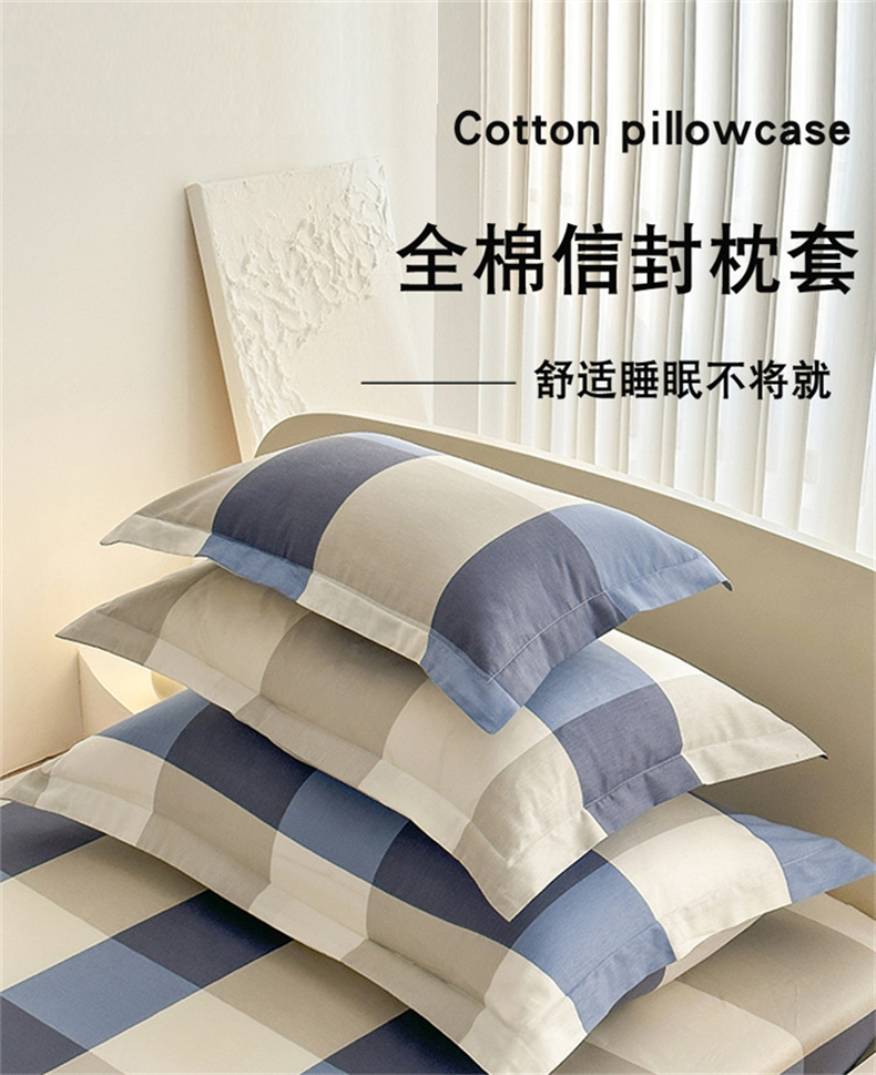 商品名称:凌云家纺 2025新款A类13372全棉小清新印花信封枕套 蓝大格