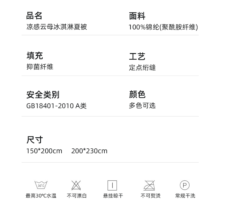商品名称:佳轩家纺 2025新款凉感云母冰淇淋夏被 高级灰