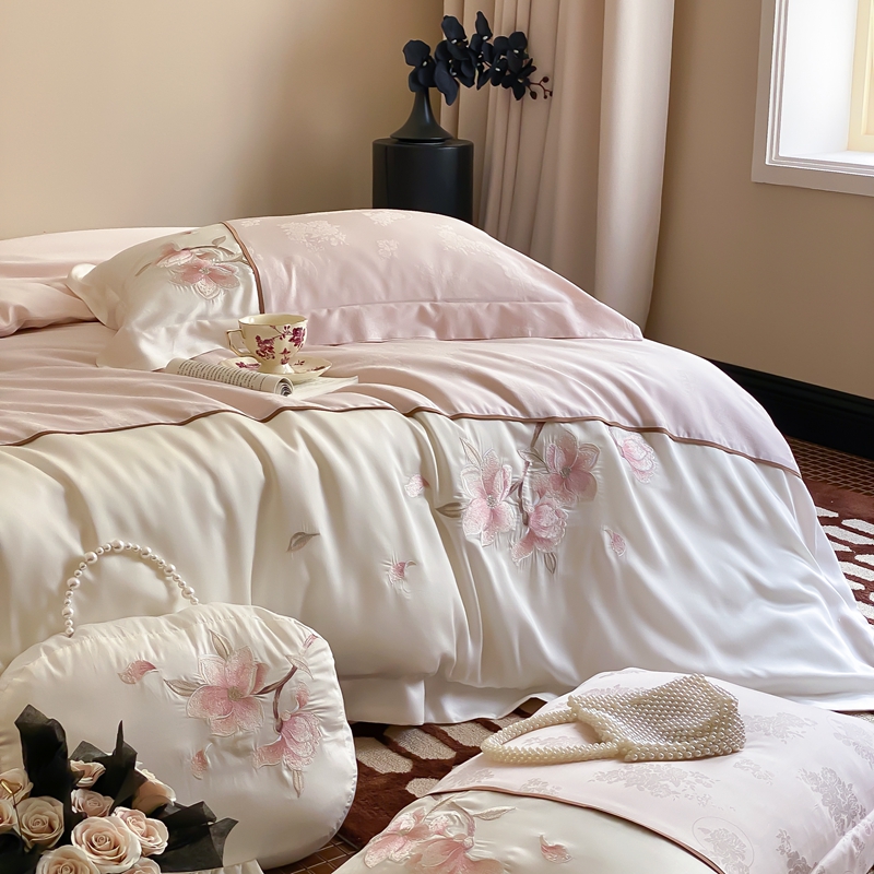 (总)MIU缪家居 2025春夏新款60支兰精天丝四件套-爱莎,爱莎-浅粉,爱莎-乳白