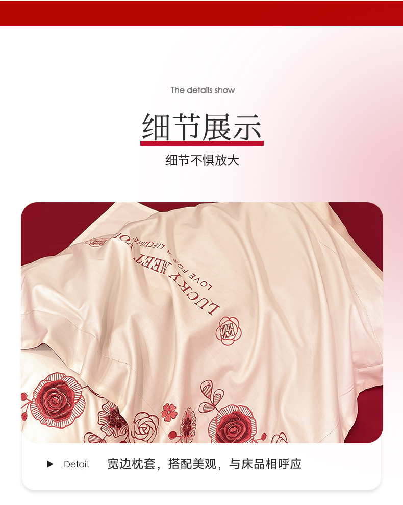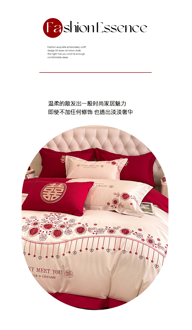 遇见家居生活馆 2024新款全棉刺绣婚庆四件套 浪漫相随-奶昔白