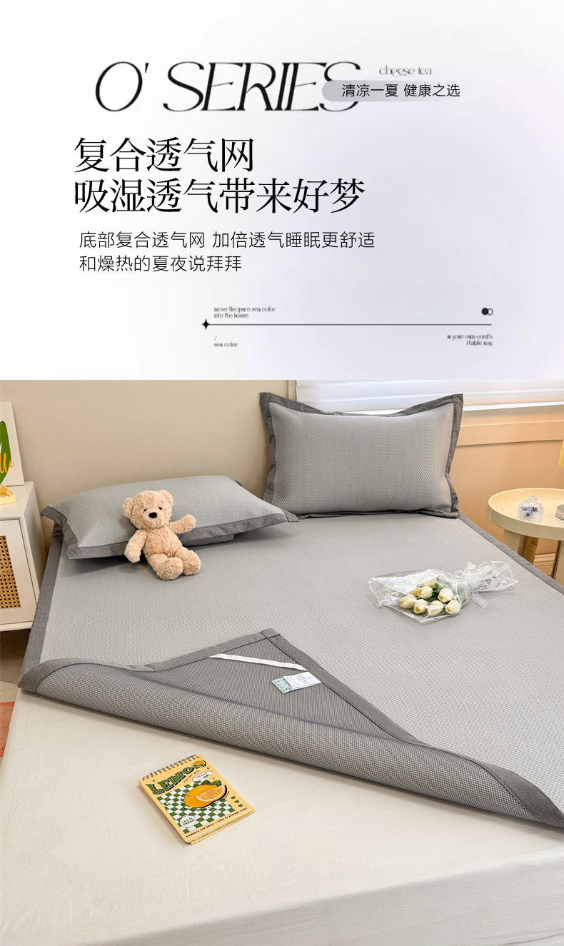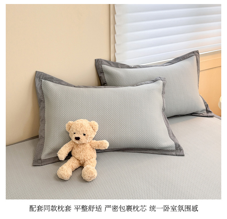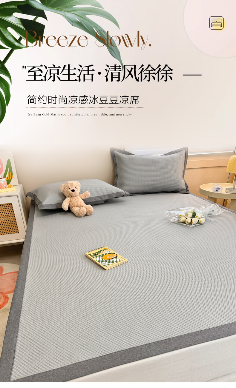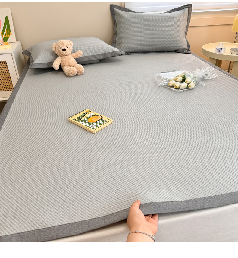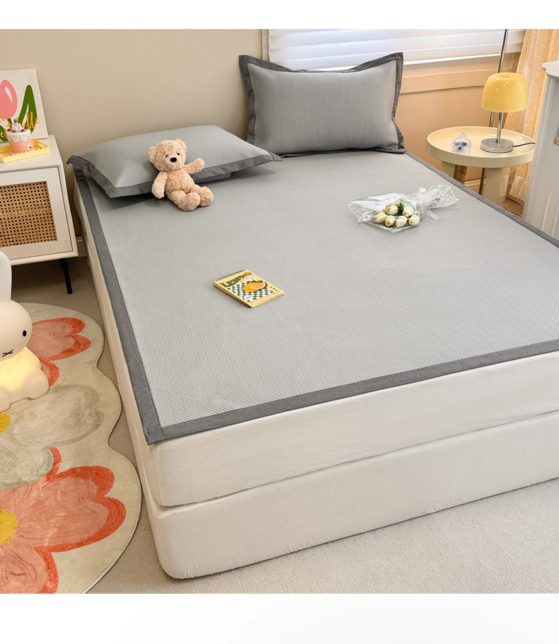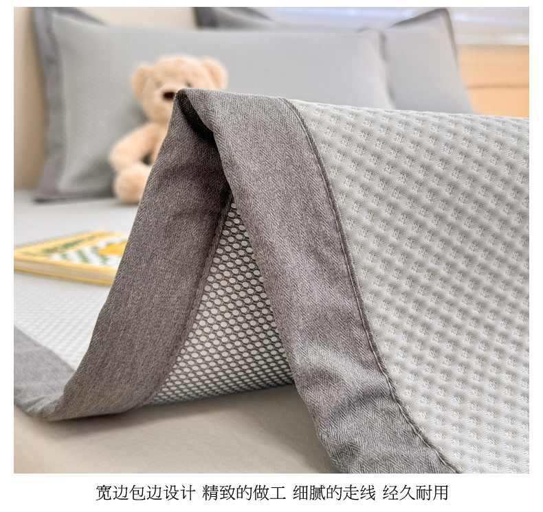 柒月家居 2024新款PE凉感豆豆复合款凉席套件 华夫格-灰