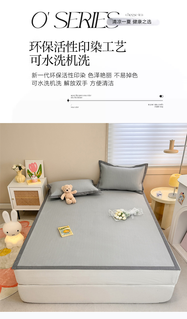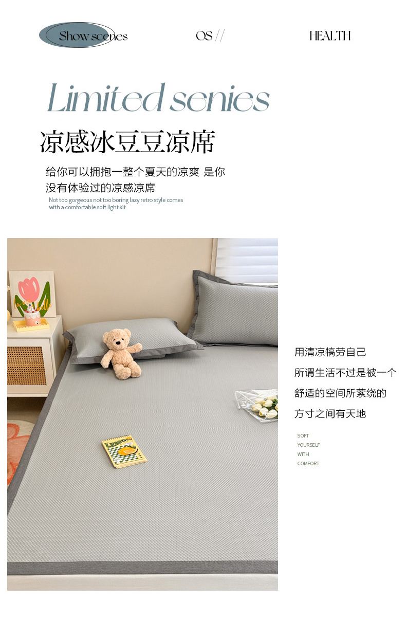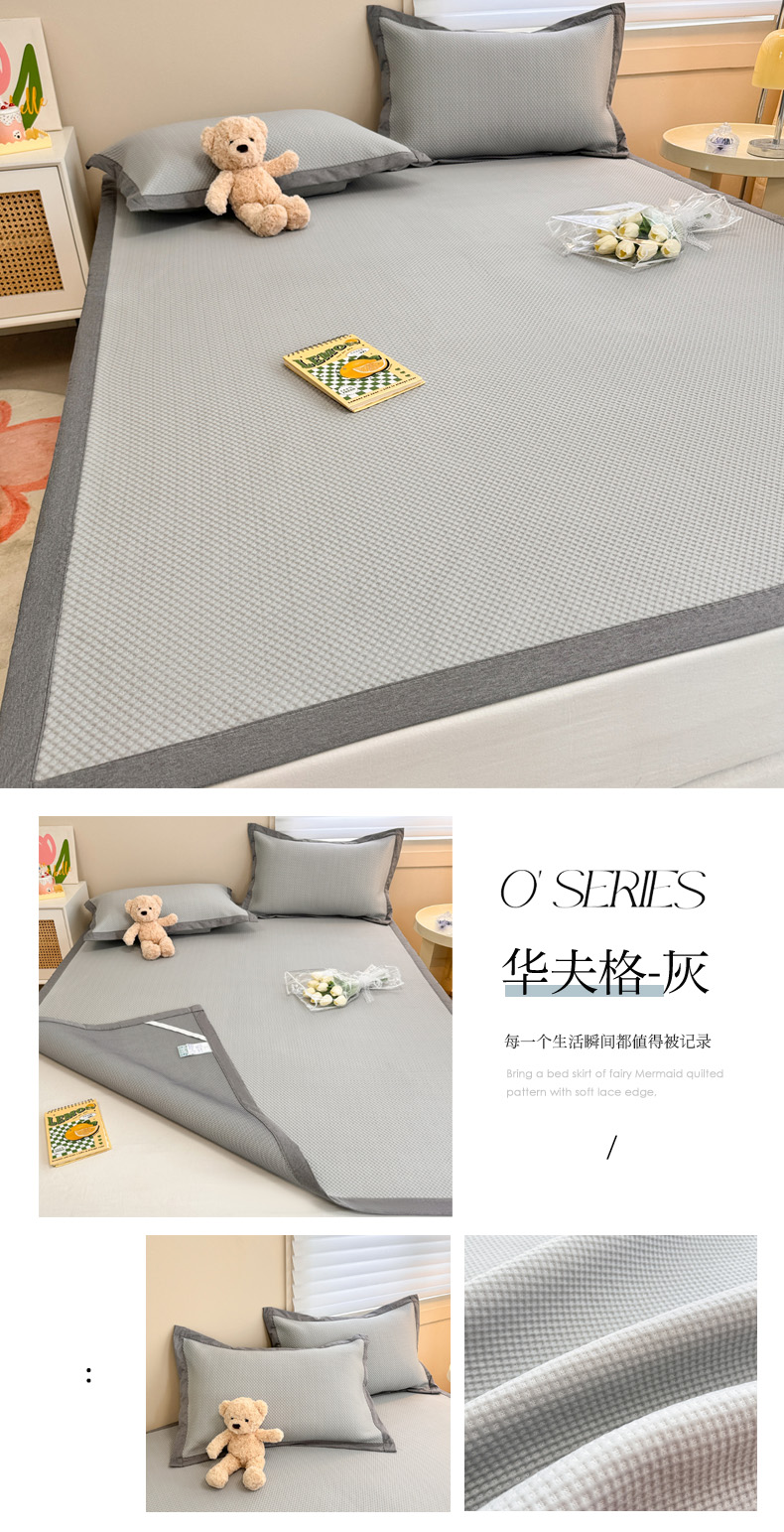 商品名称:柒月家居 2024新款PE凉感豆豆复合款凉席套件 华夫格-灰