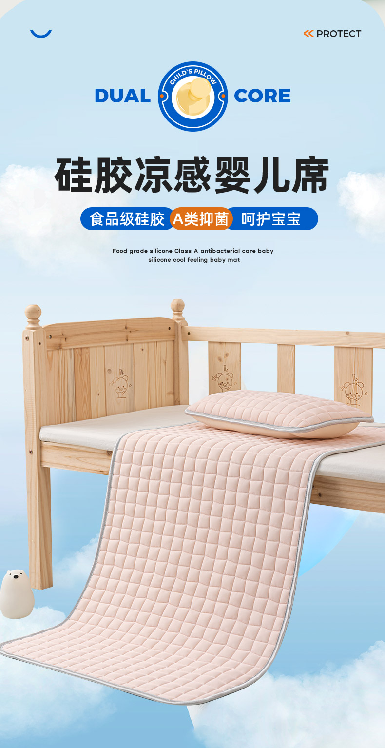 商品名称:吾诺家居 2024新款冰嘟嘟儿童硅胶凉席 浅粉
