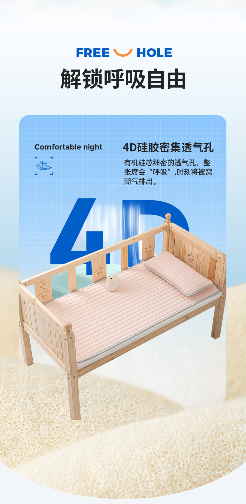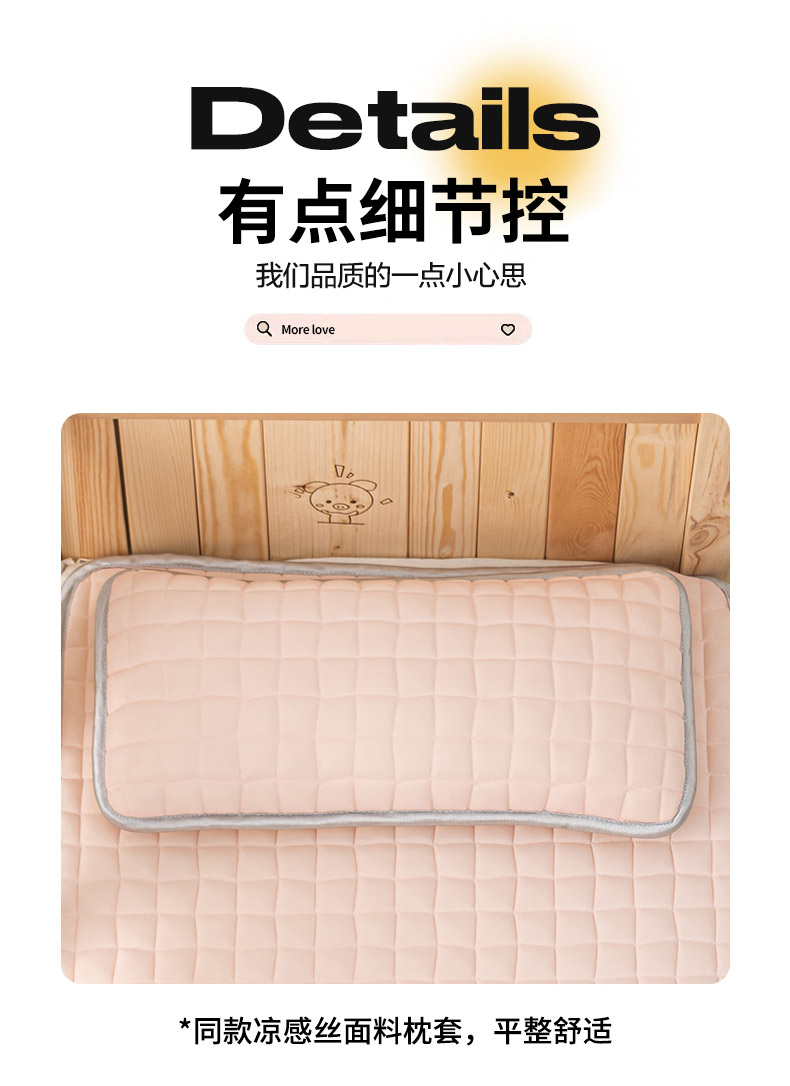 吾诺家居 2024新款冰嘟嘟儿童硅胶凉席 浅粉