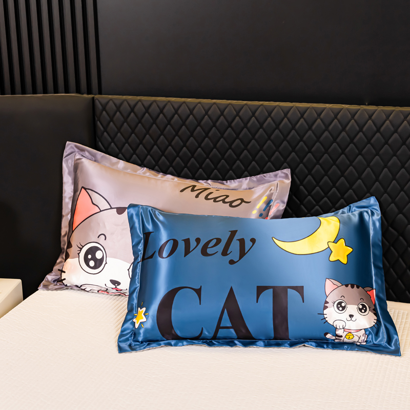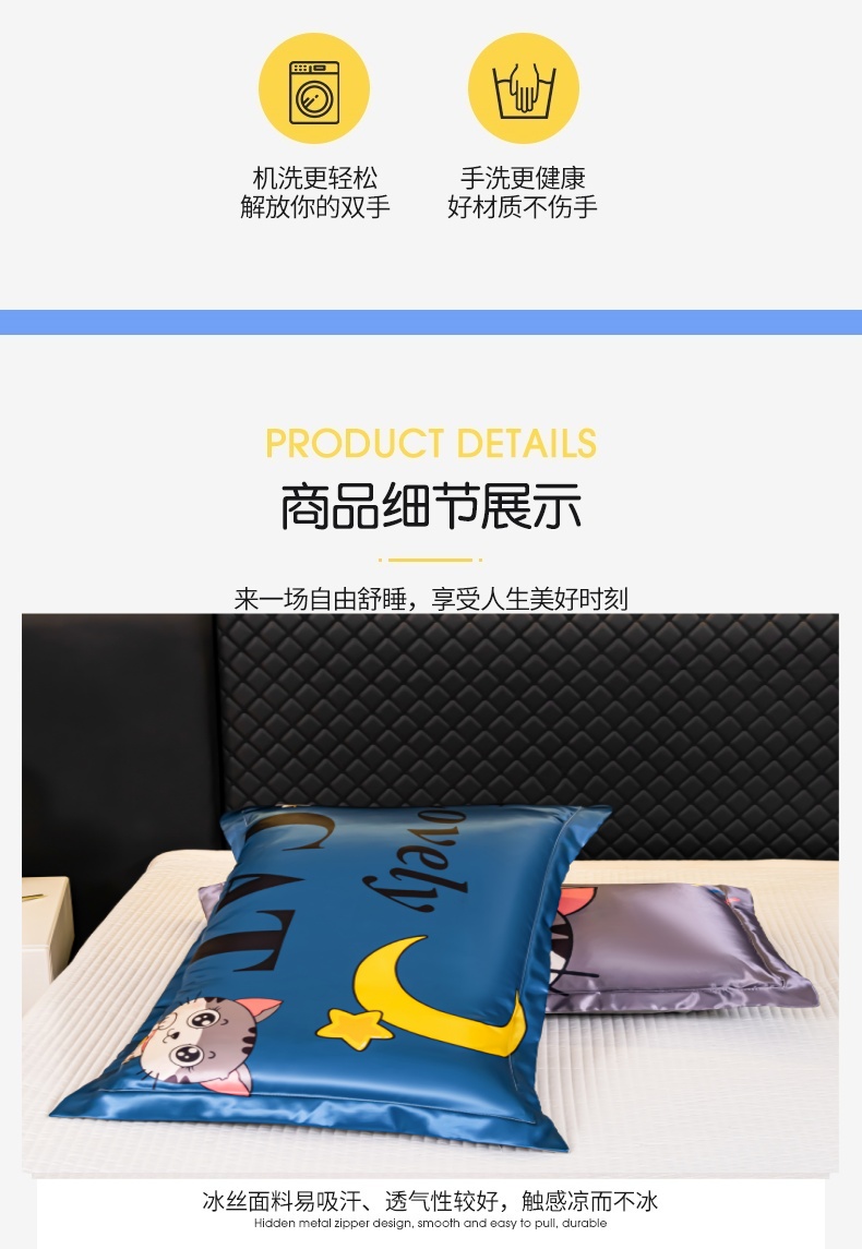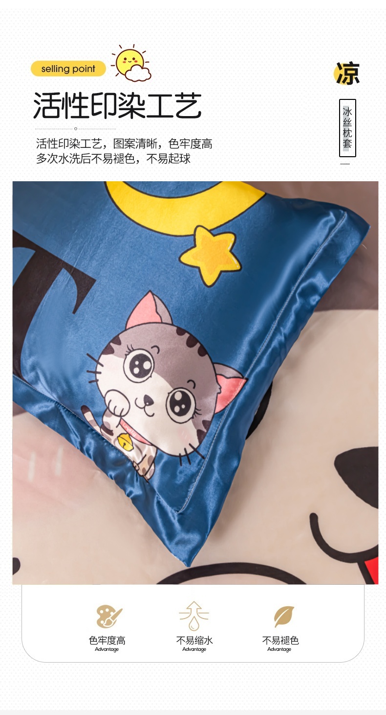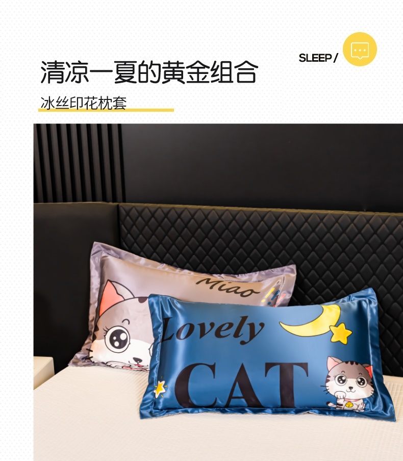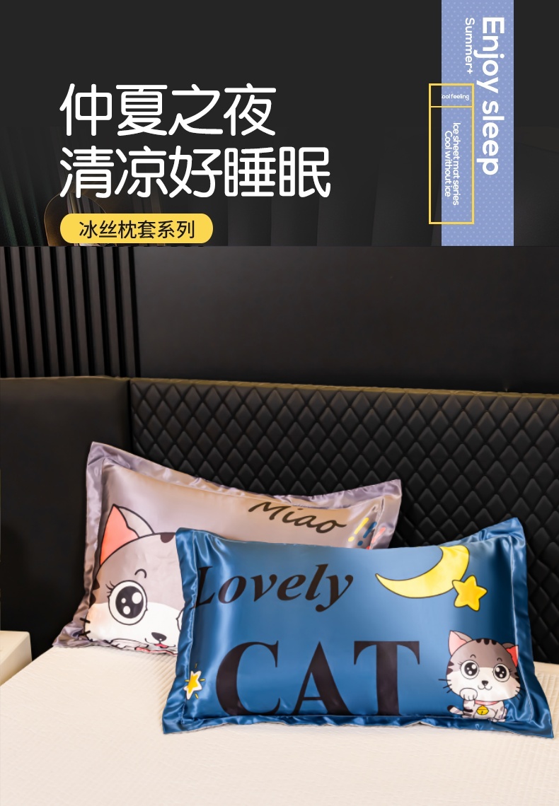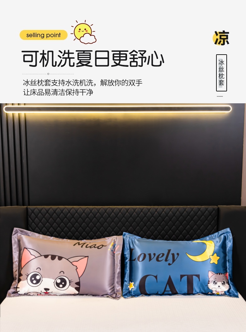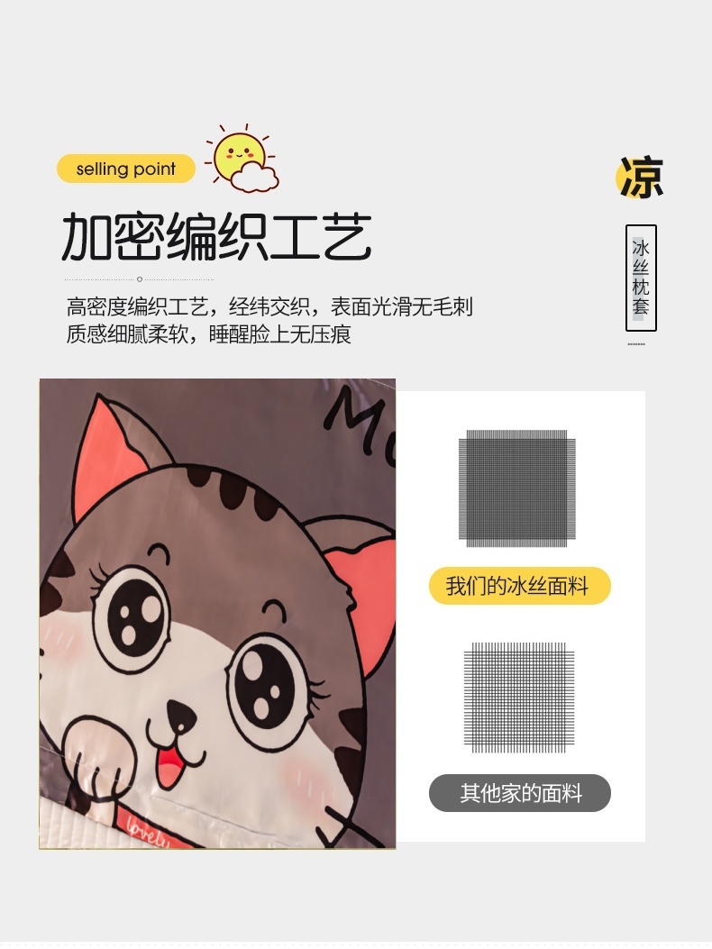 商品名称:梦舒羽 2025新款可水洗冰丝枕套宿舍单人凉爽枕头套 招财小猫