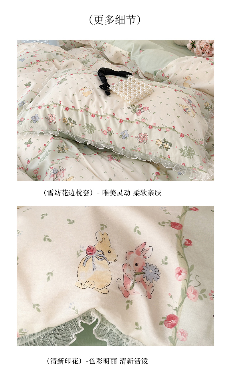 (总)昔可 2023新款全棉四件套-第五批,春日采花小兔,复古波西,落樱紫花,绿野小兔,排排郁金香,芍药女孩,叶子樱桃