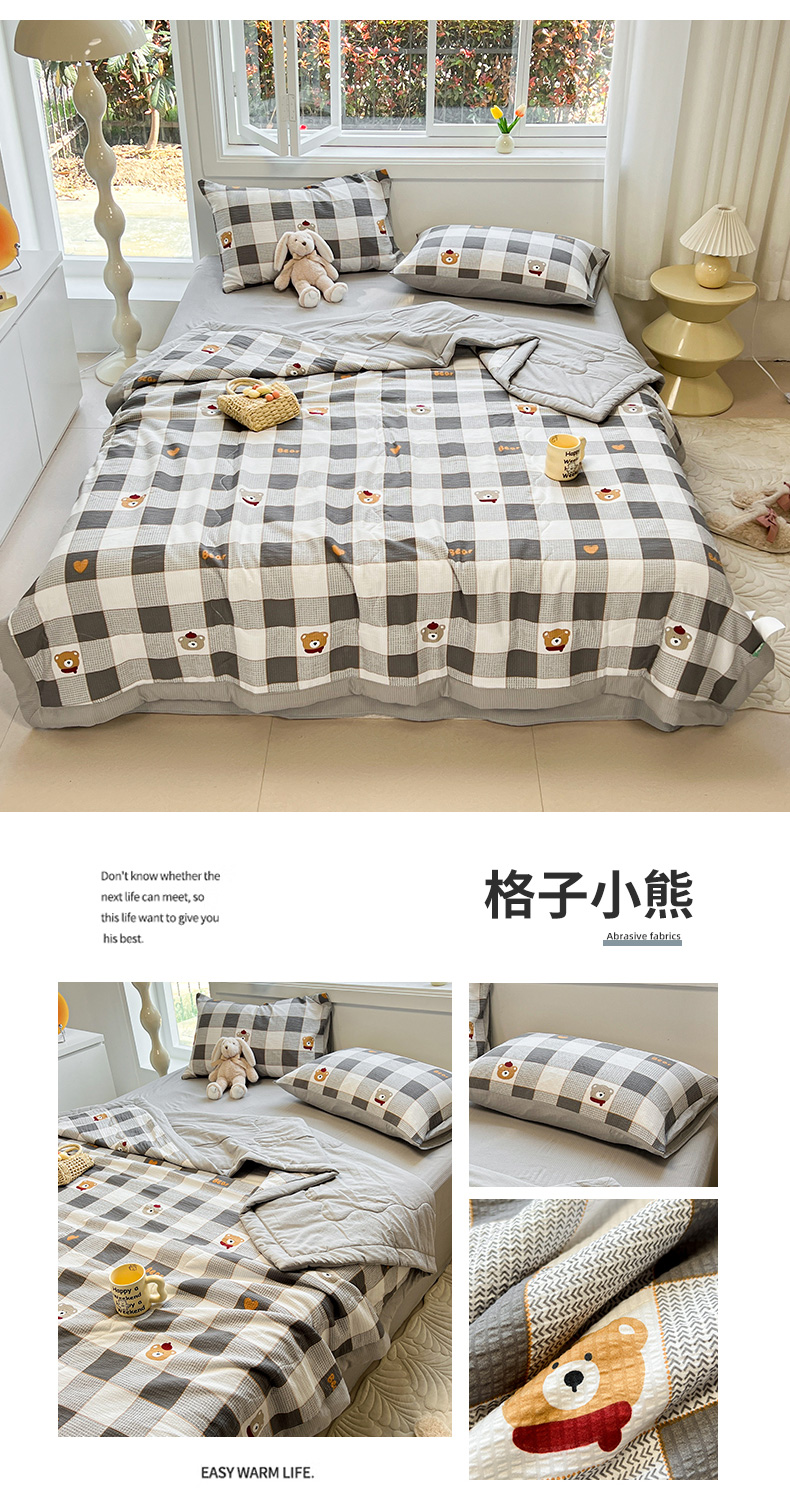 当前位置: 91家纺网 > 商品网购 > 床品套件 > 四件套 > 夏被四件套 > 安哆啦家纺 2024新款A类泡泡棉印花夏被四件套 格子小熊