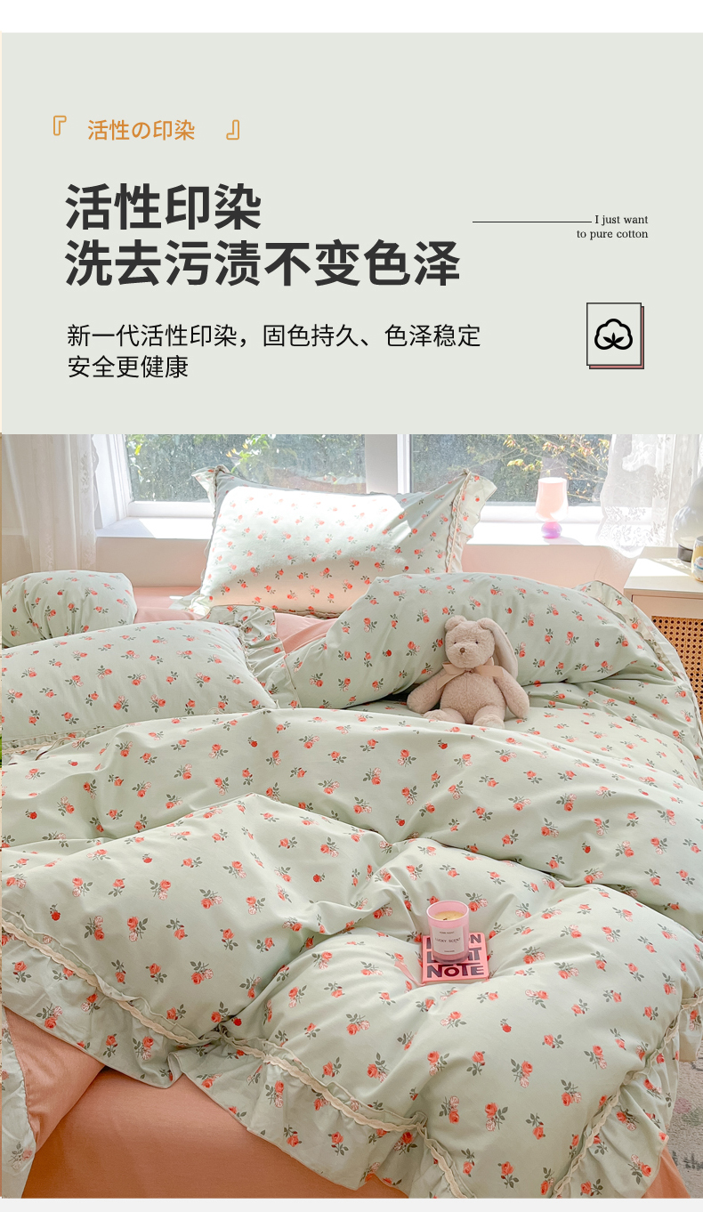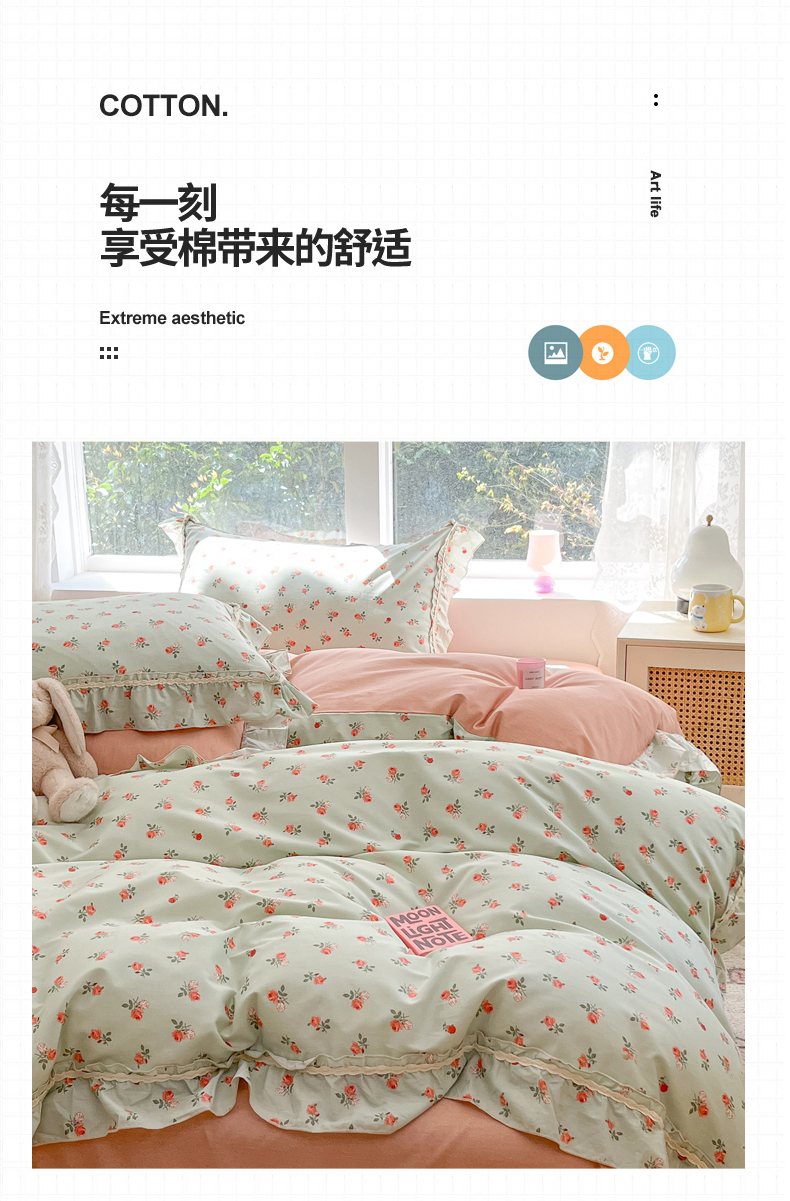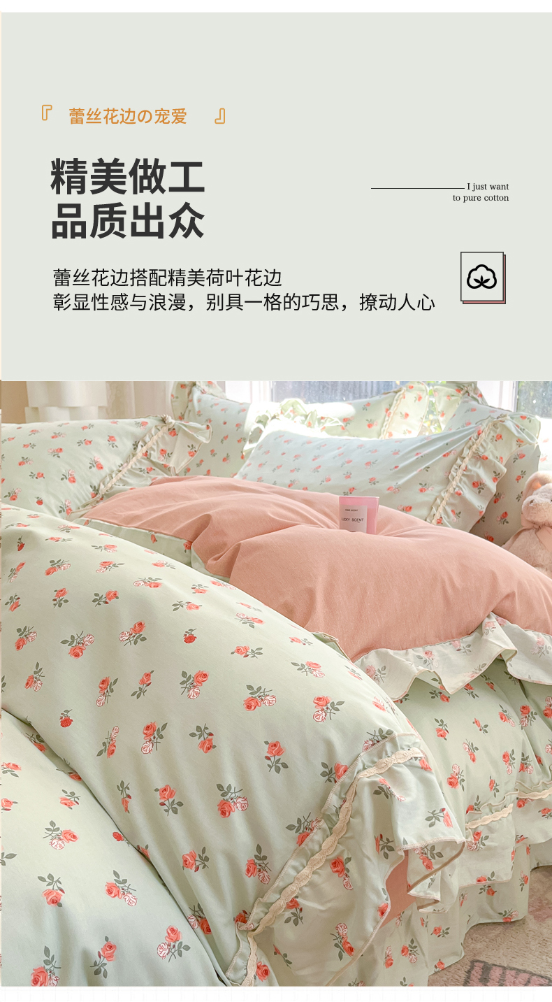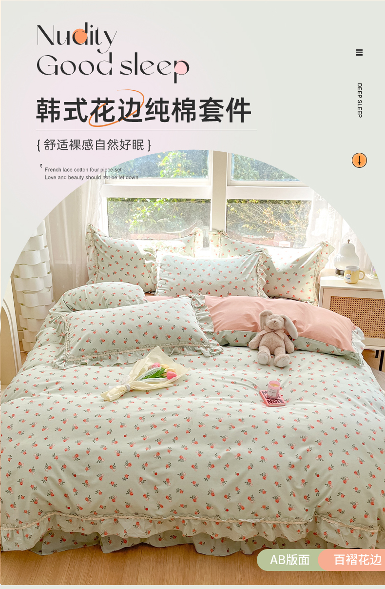 商品名称:艾唯希家纺 2024新款韩式花边全棉四件套 邂逅