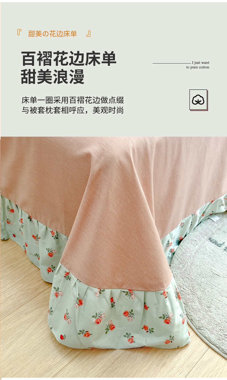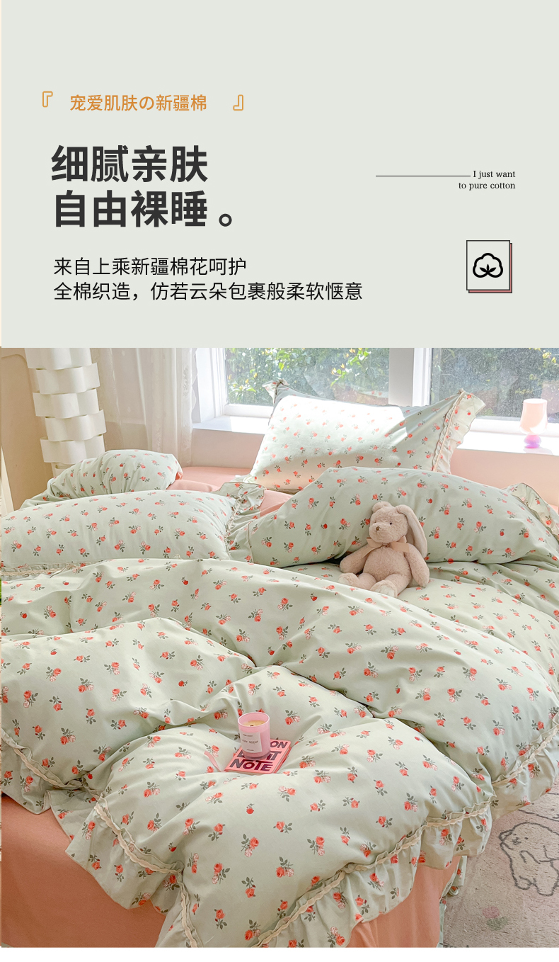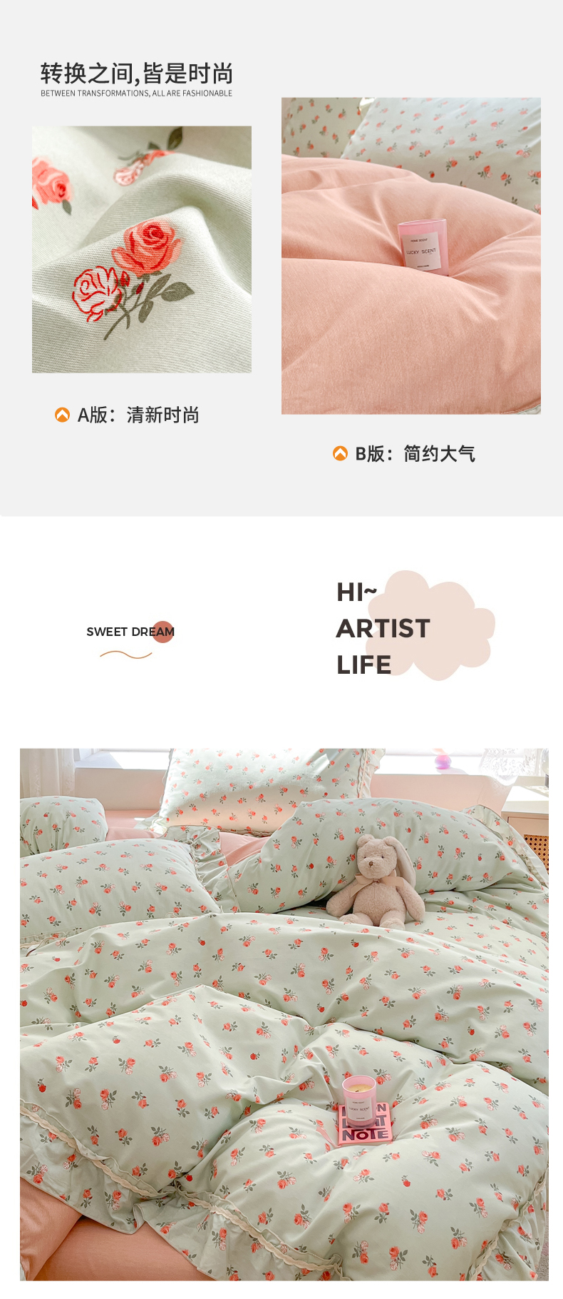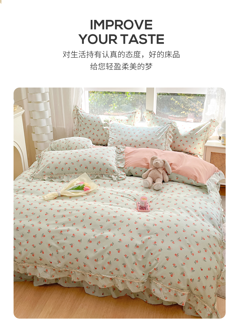 商品名称:艾唯希家纺 2024新款韩式花边全棉四件套 邂逅
