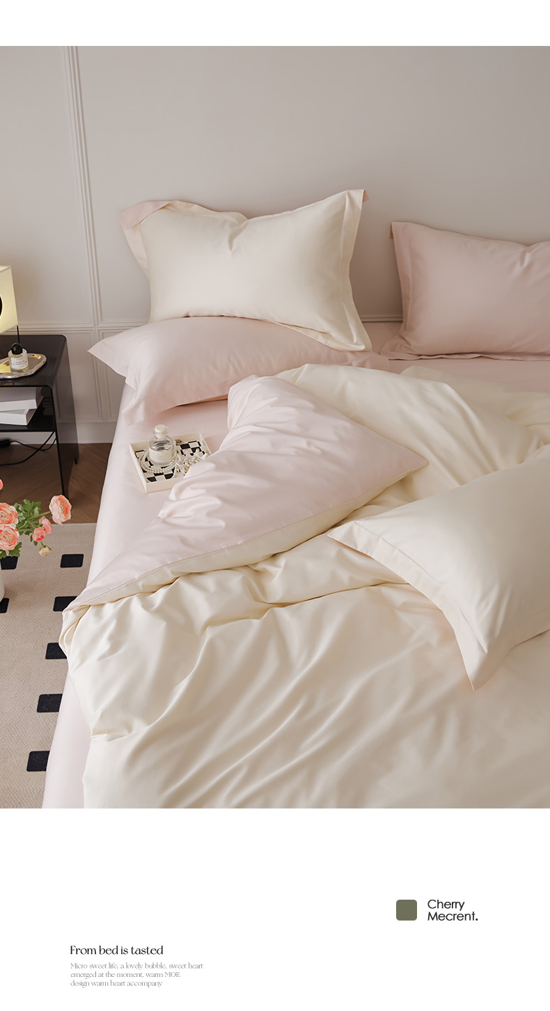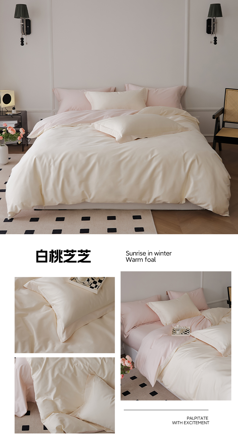 当前位置: 91家纺网 > 商品网购 > 床品套件 > 四件套 > 长绒棉四件套 > 新款绵柔软糯长绒棉拼色四件套 白桃芝芝