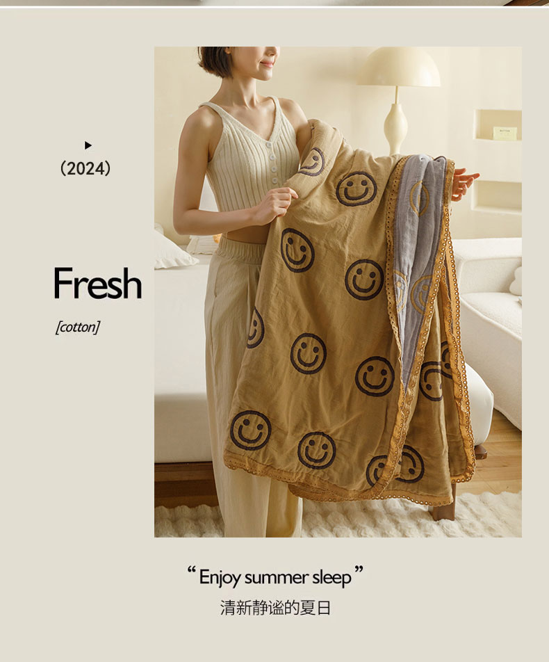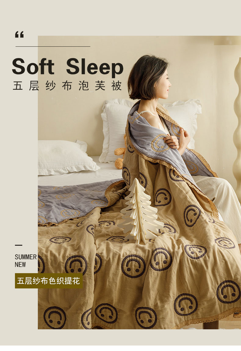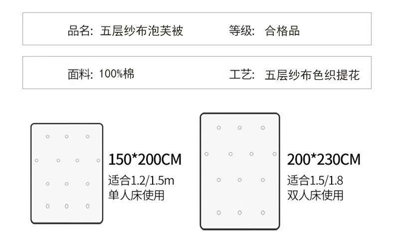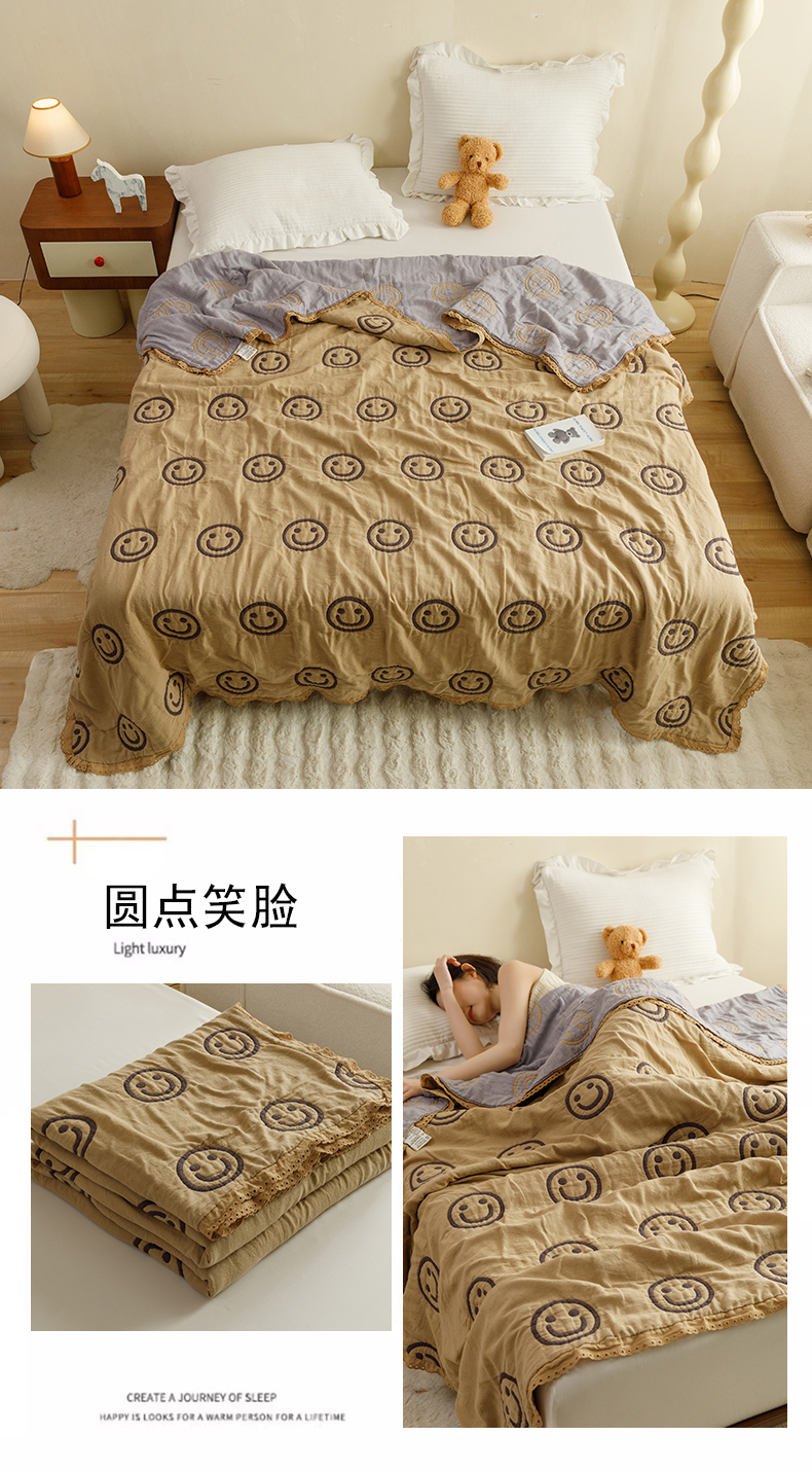 商品名称:麻依 2024新款泡芙被夏季款五层纱布夏被夏凉被 圆点笑脸