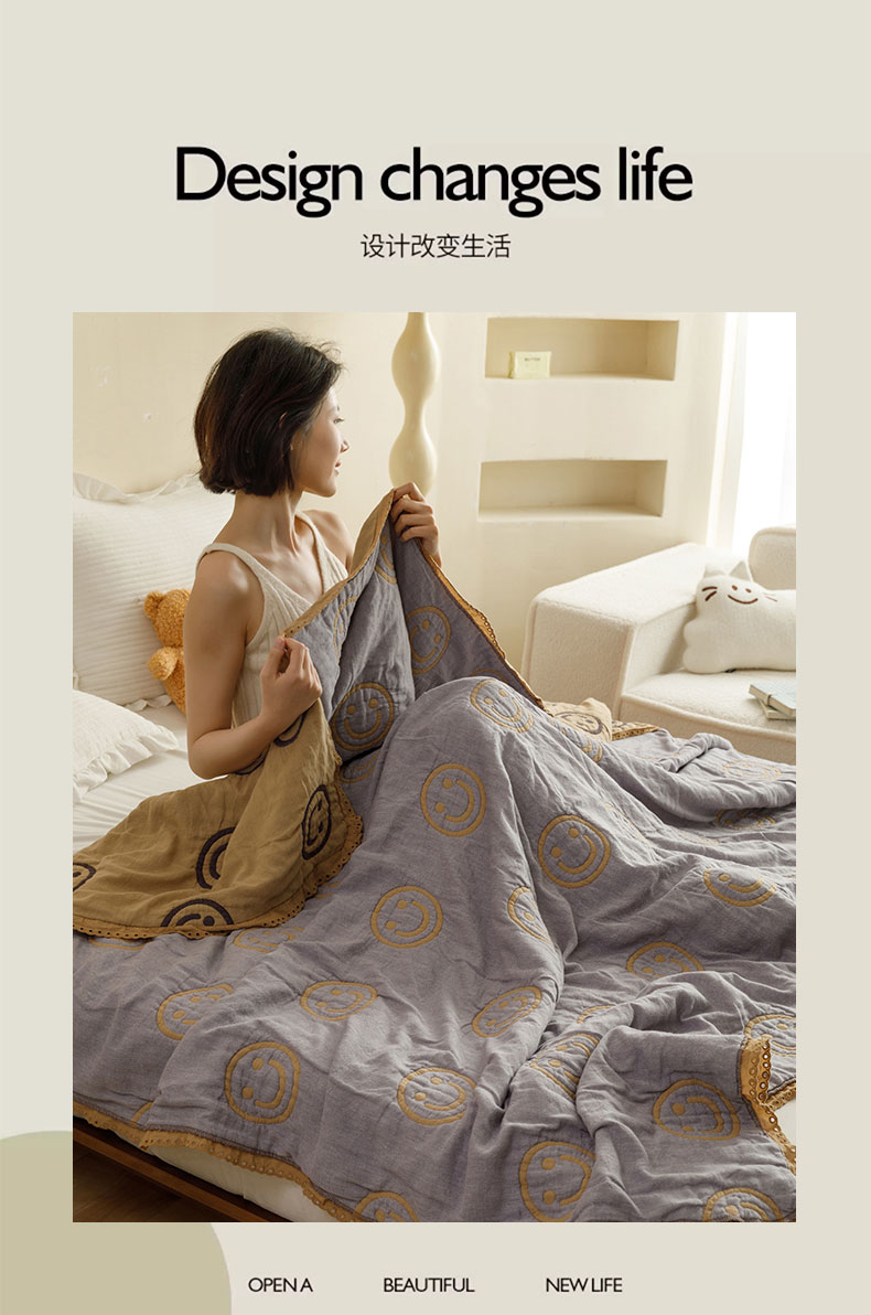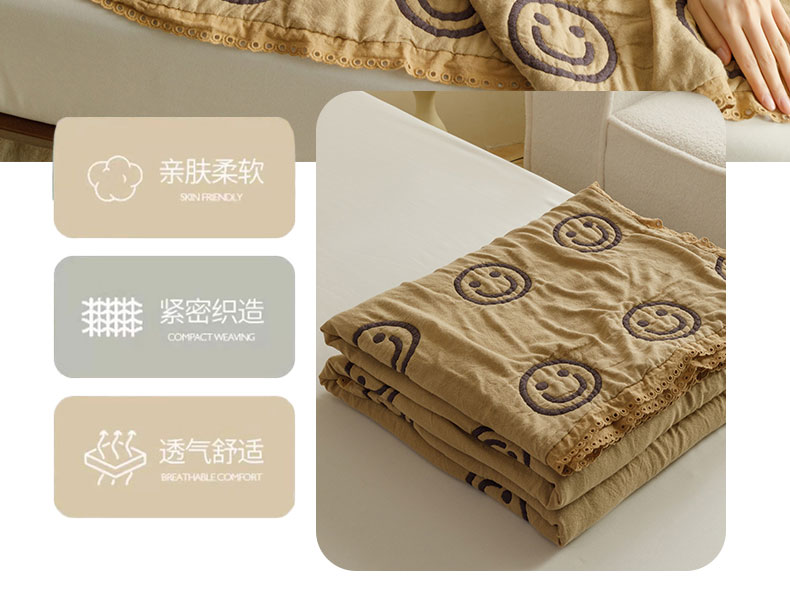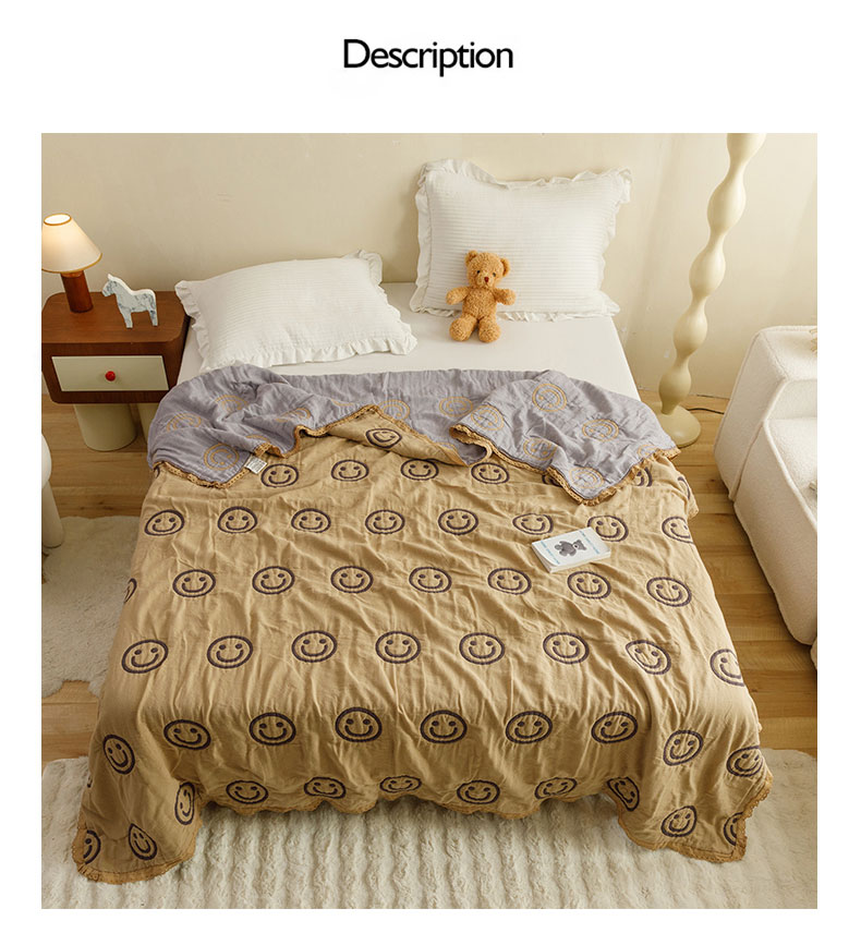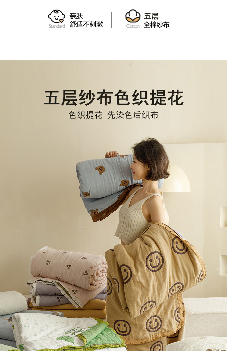 商品名称:麻依 2024新款泡芙被夏季款五层纱布夏被夏凉被 圆点笑脸