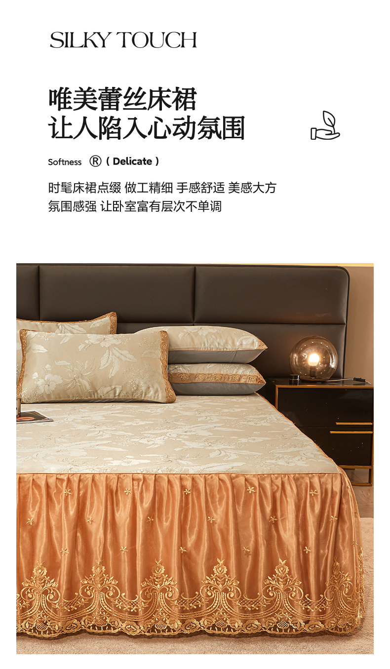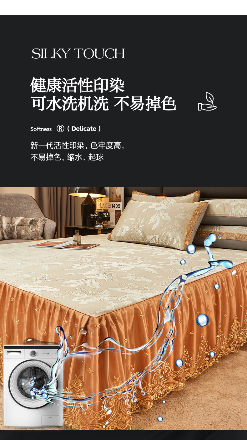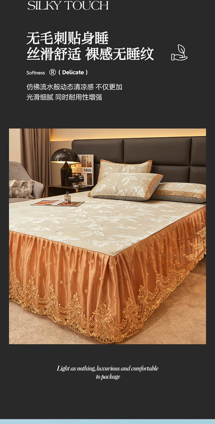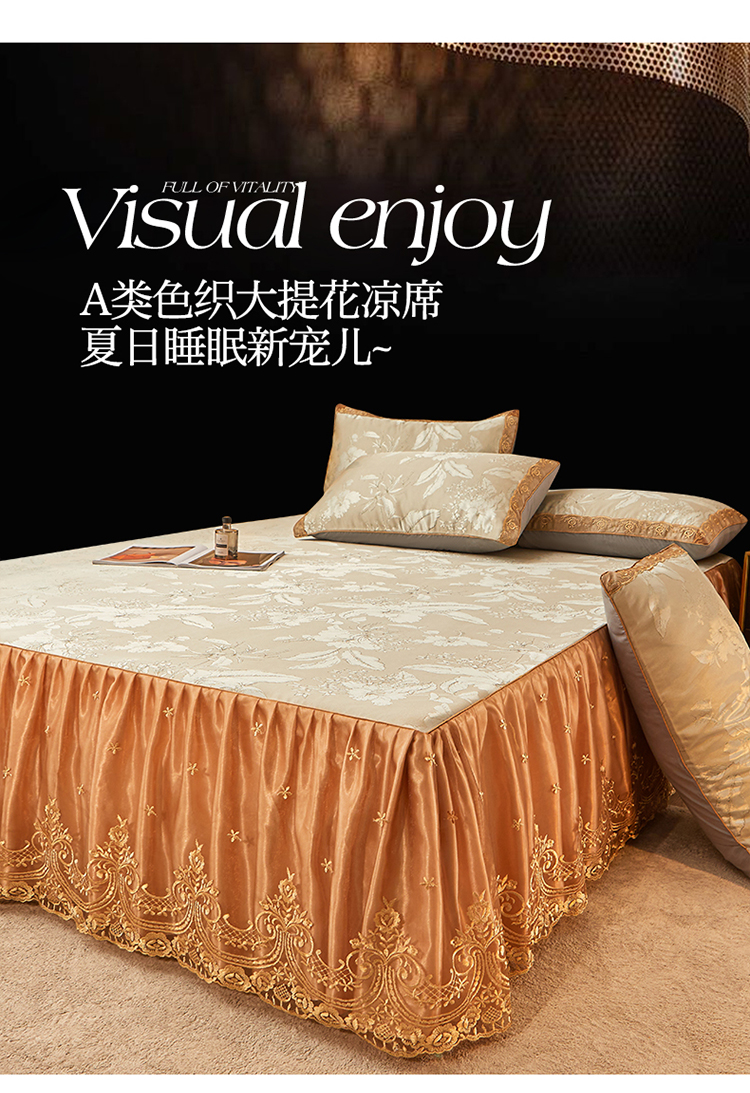 罗艺轩 2024新款欧式色织大提花床裙凉席 妍艺
