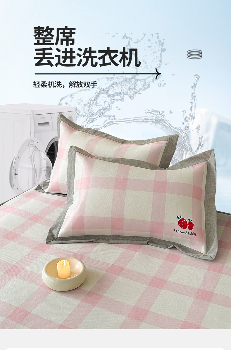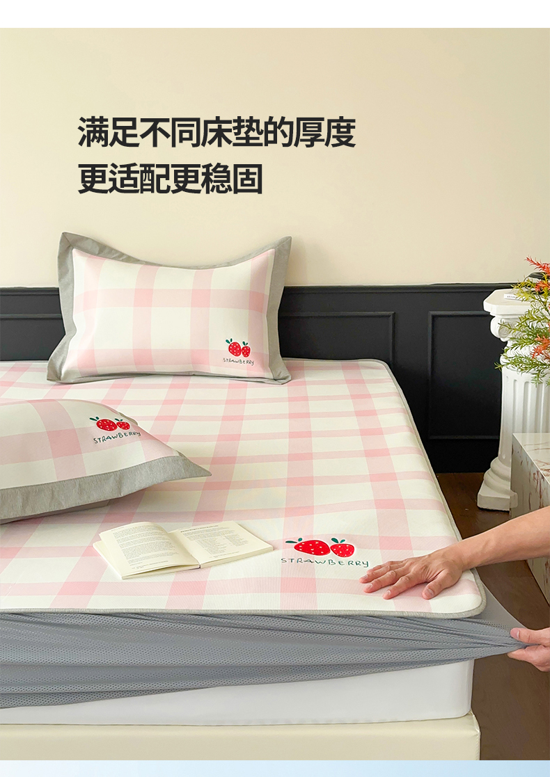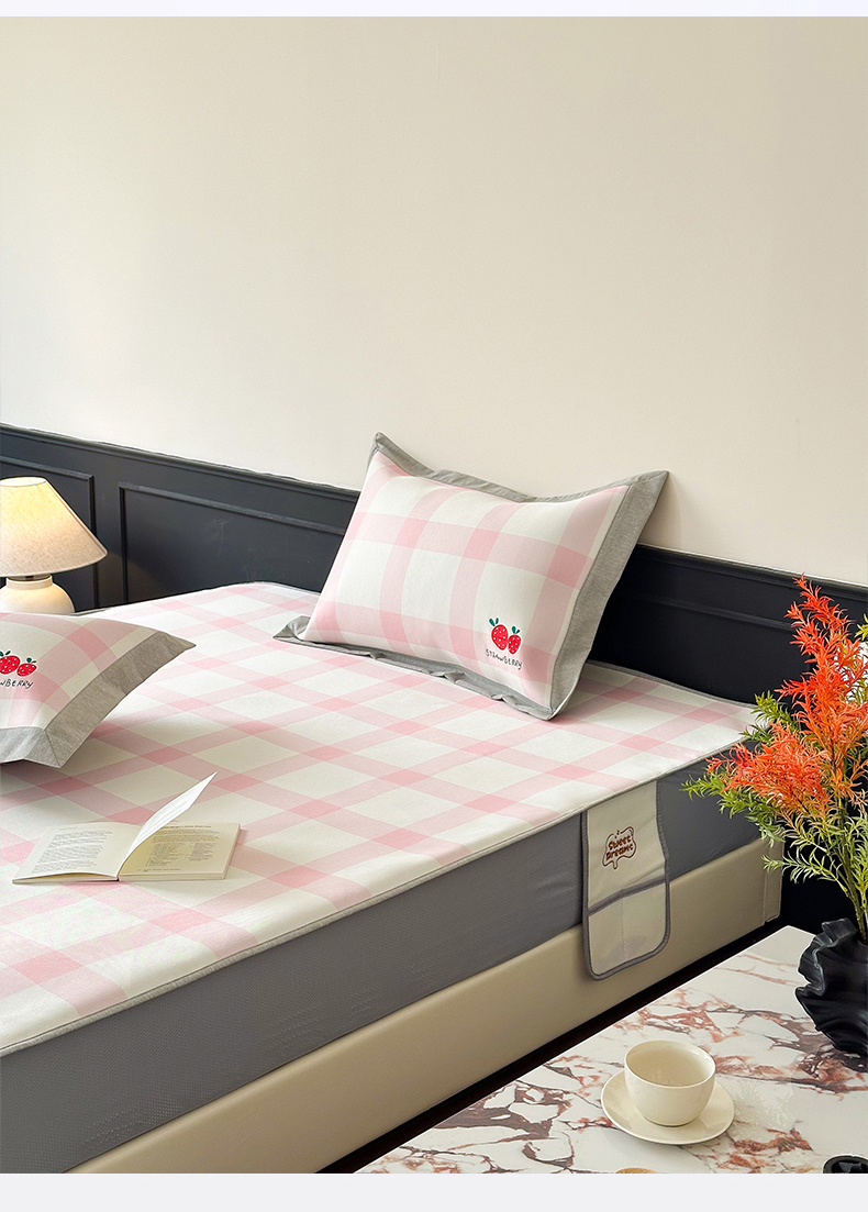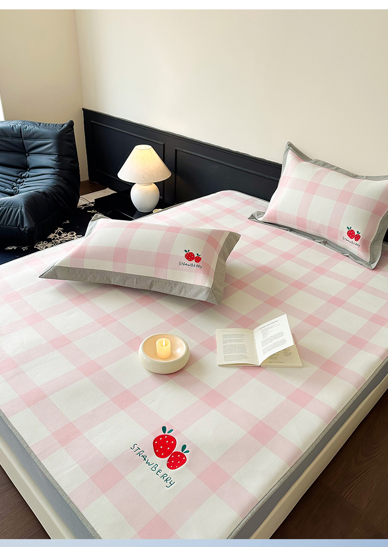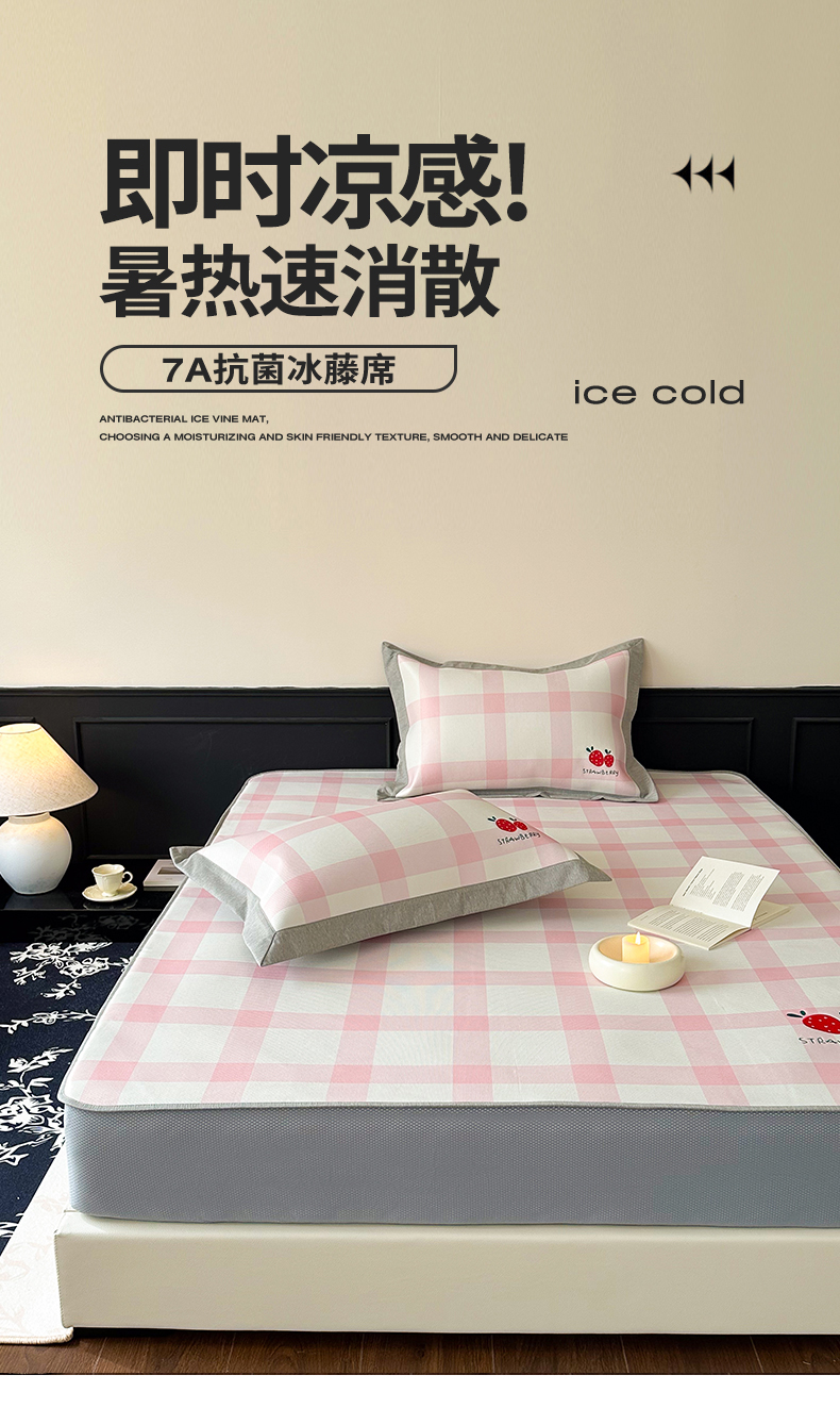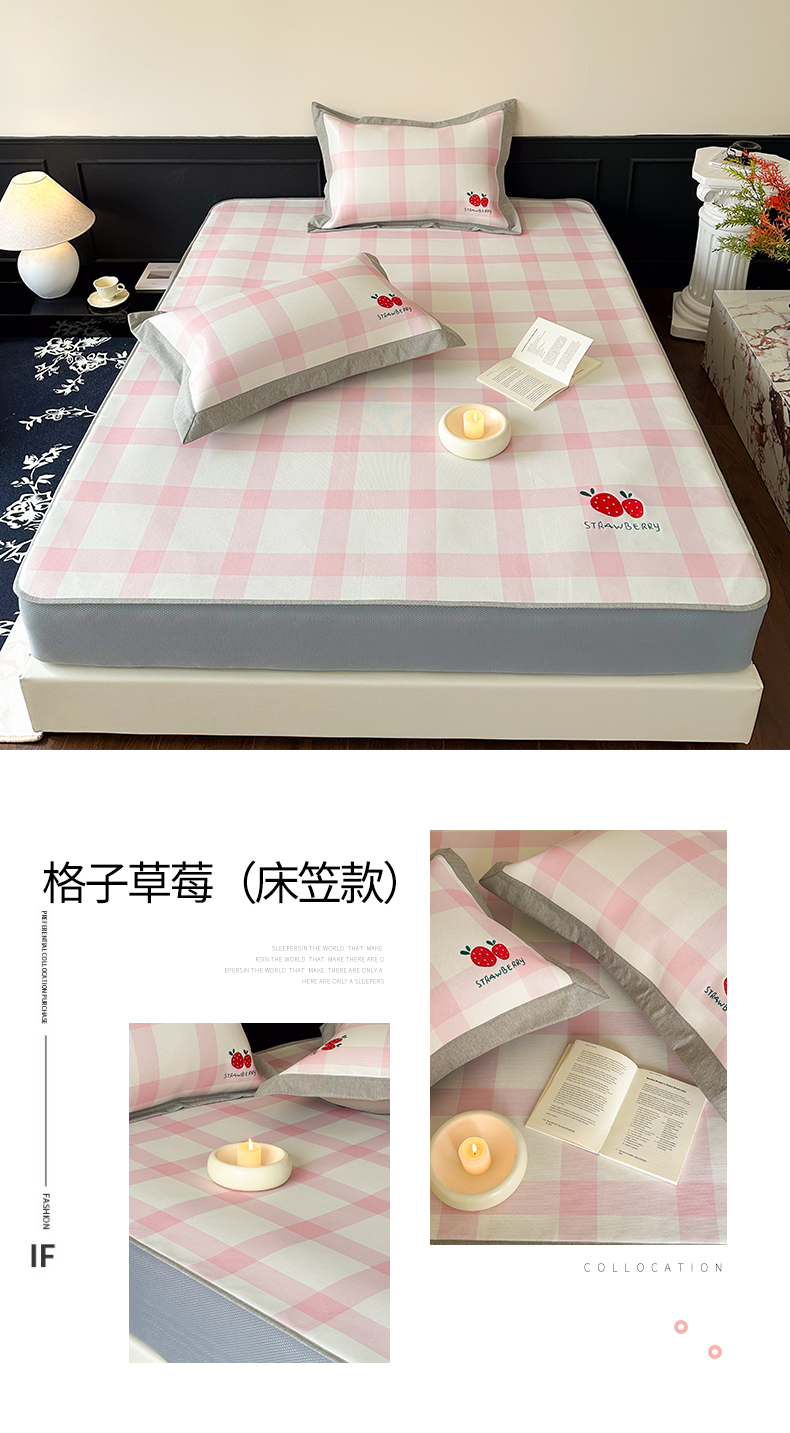 商品名称:甜梦 2024新款母婴级7A抗菌养生冰藤席影棚1—床笠款 格子草莓(床笠款)