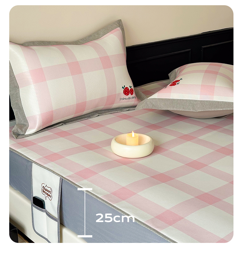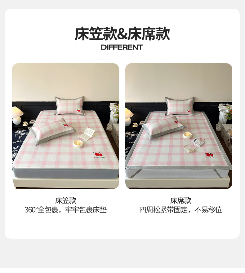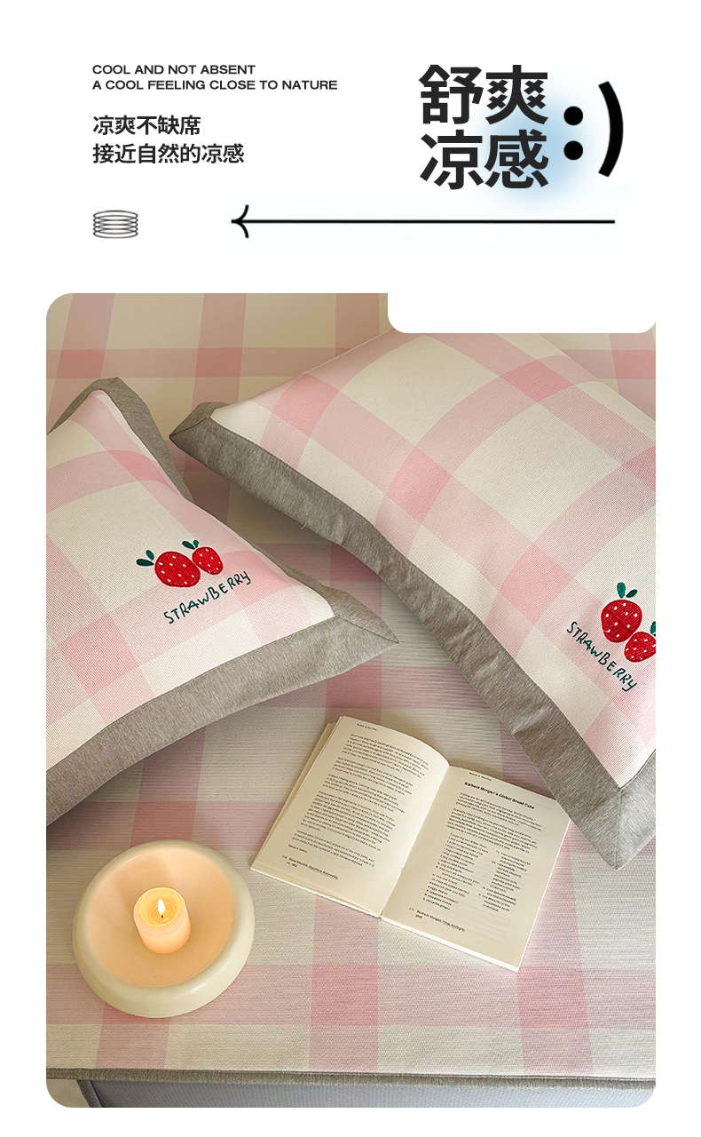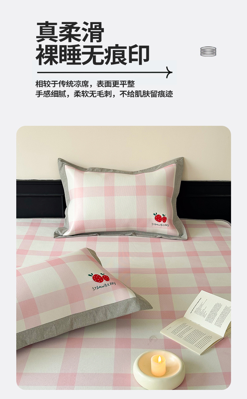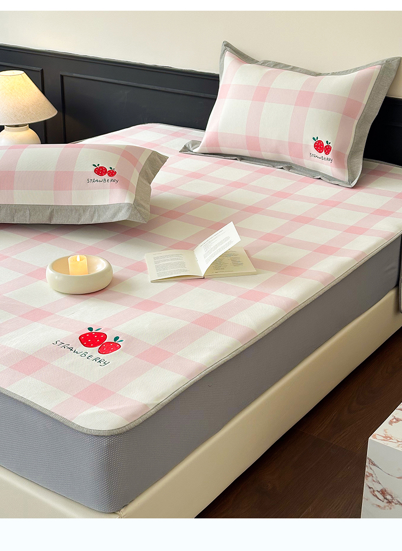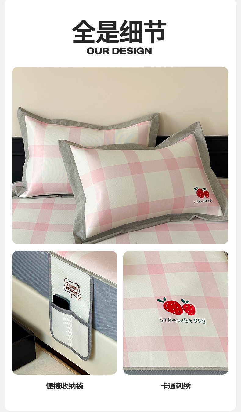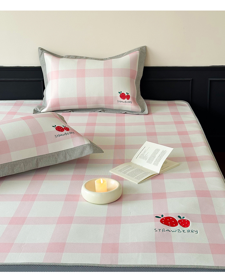 商品名称:甜梦 2024新款母婴级7A抗菌养生冰藤席影棚1—床笠款 格子草莓(床笠款)