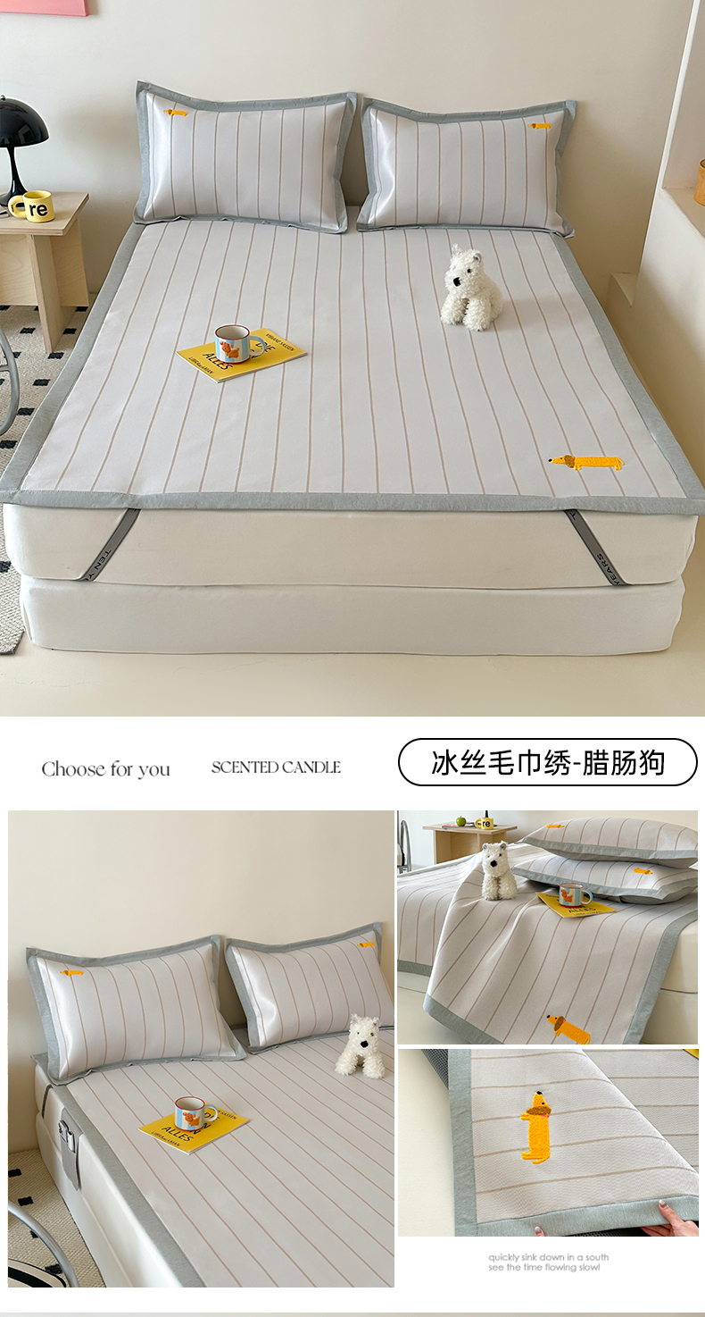 商品名称:时年 2024新款7A抗菌提花毛巾绣冰丝凉席(充值会员优惠10元) 冰丝毛巾绣-腊肠狗