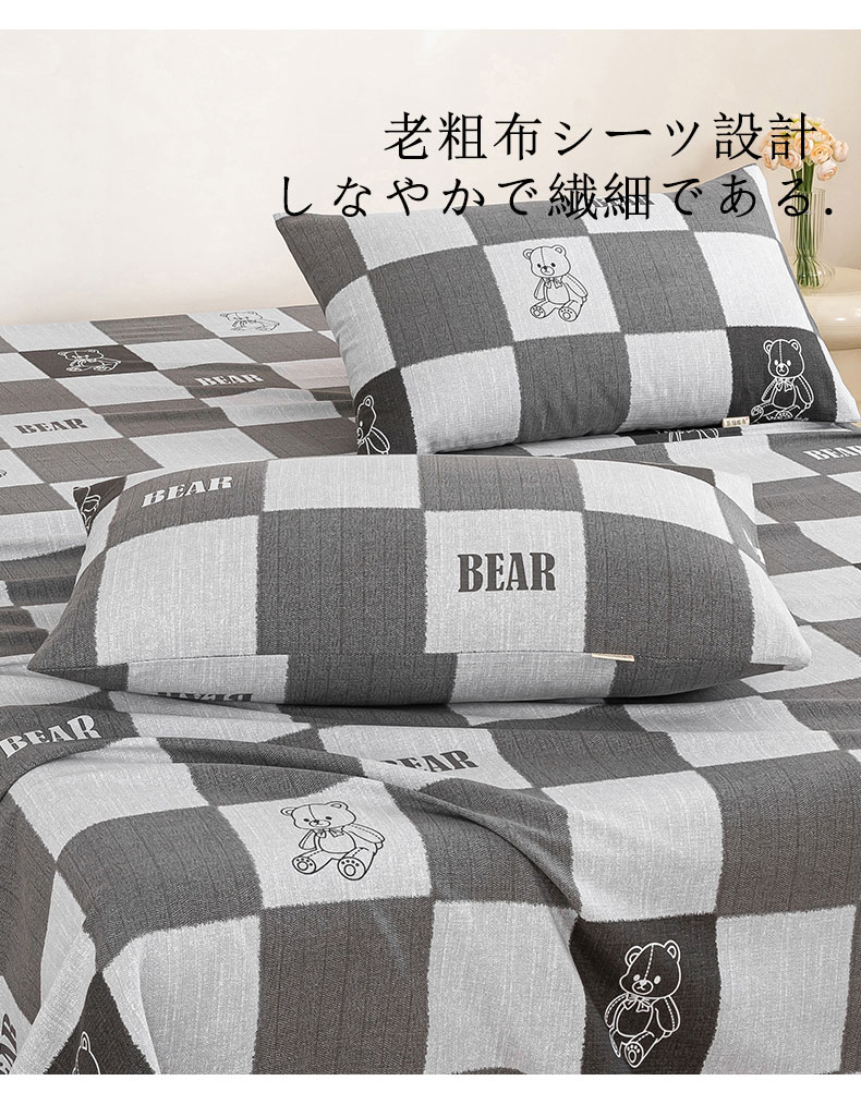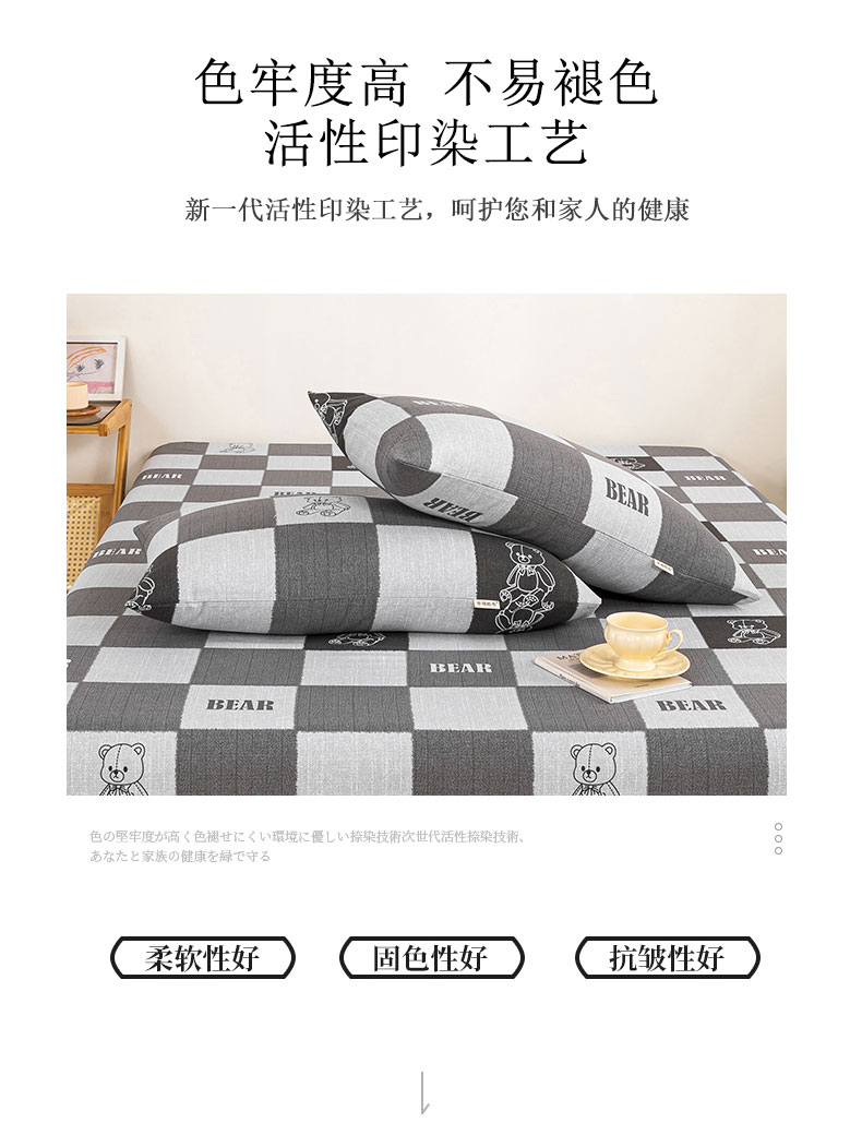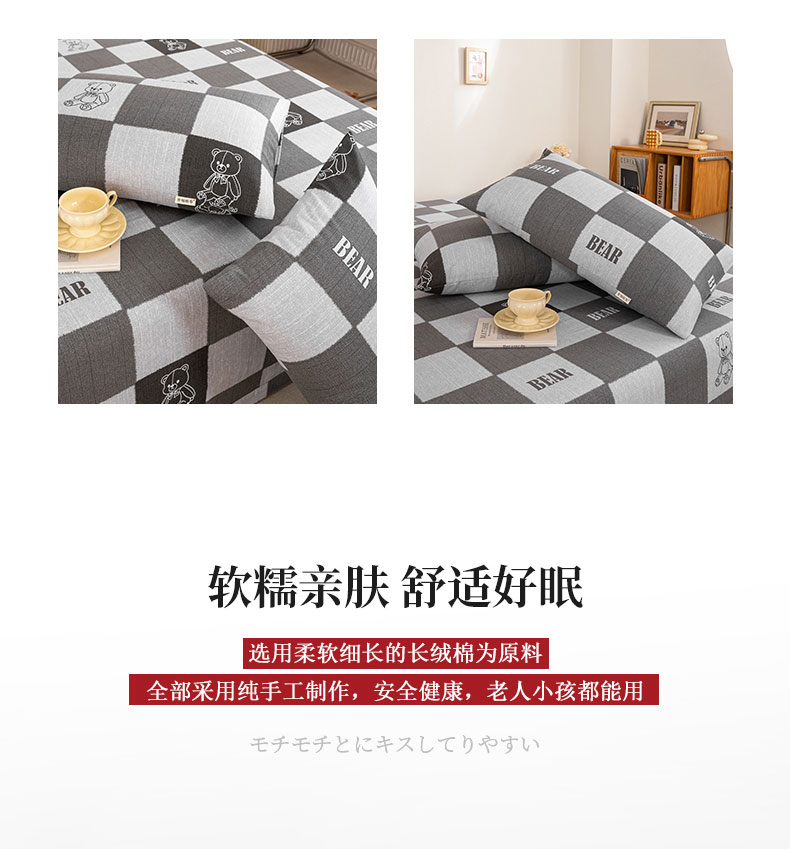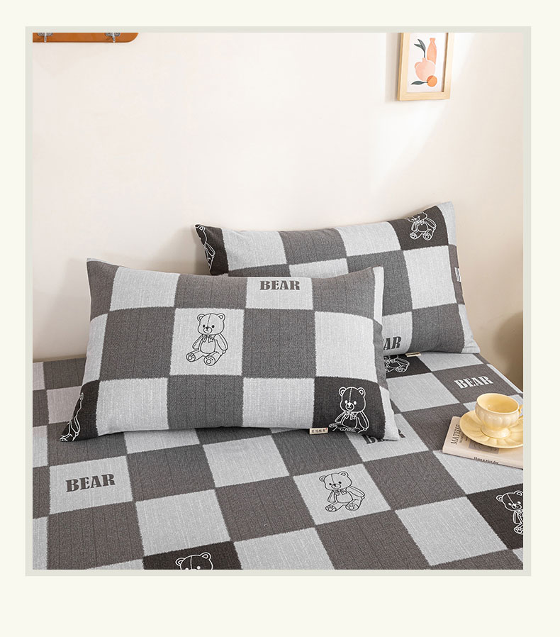 鸣升 新款舒适透气100%全棉老粗布枕套 巴比熊(灰)