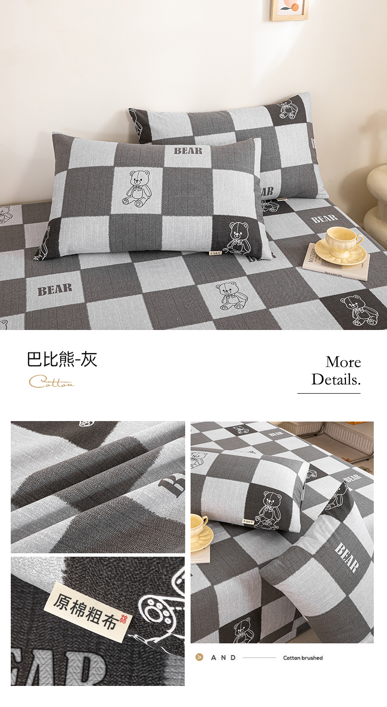 商品名称:鸣升 新款舒适透气100%全棉老粗布枕套 巴比熊(灰)