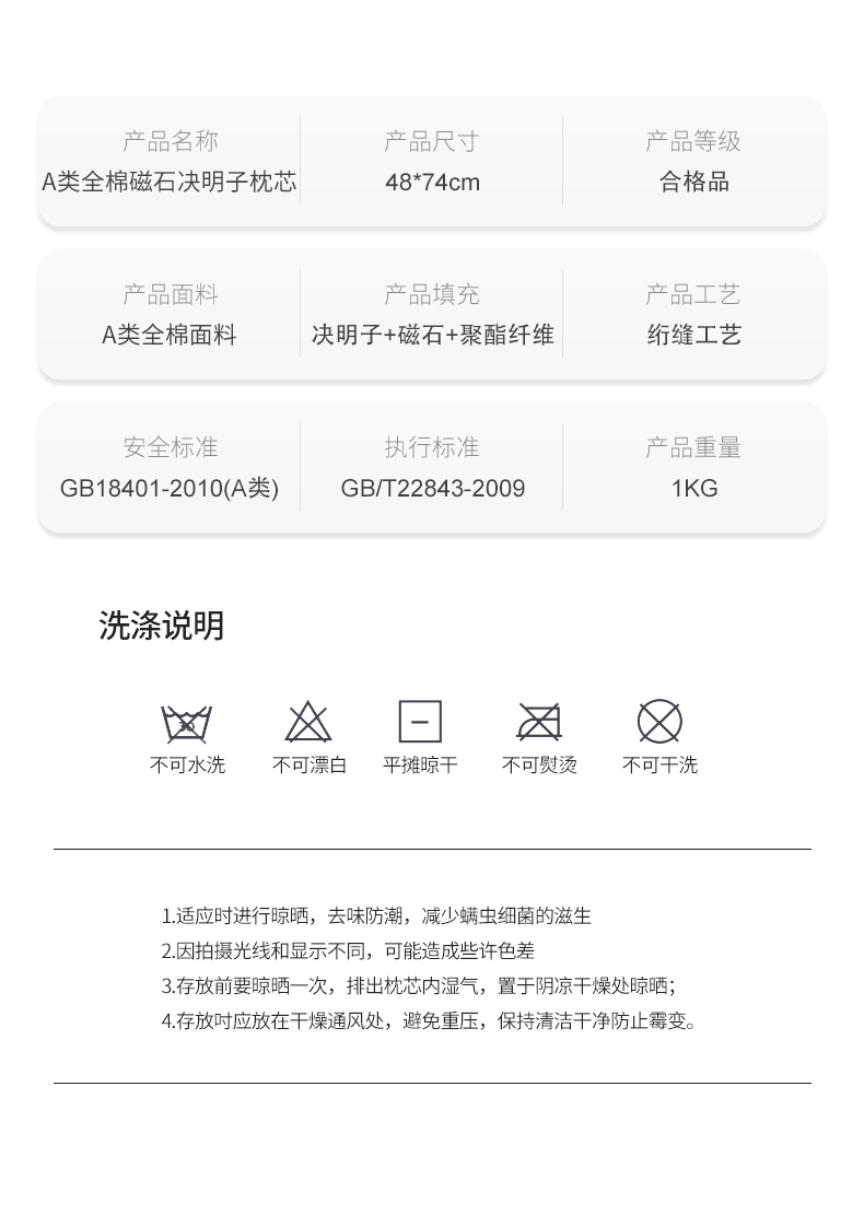 商品名称:(总)梦叶草 2024新款全棉15粒磁石决明子枕芯