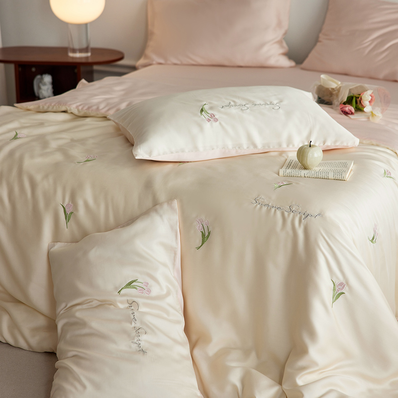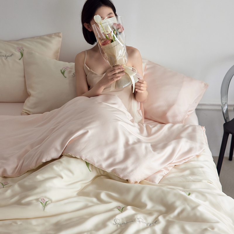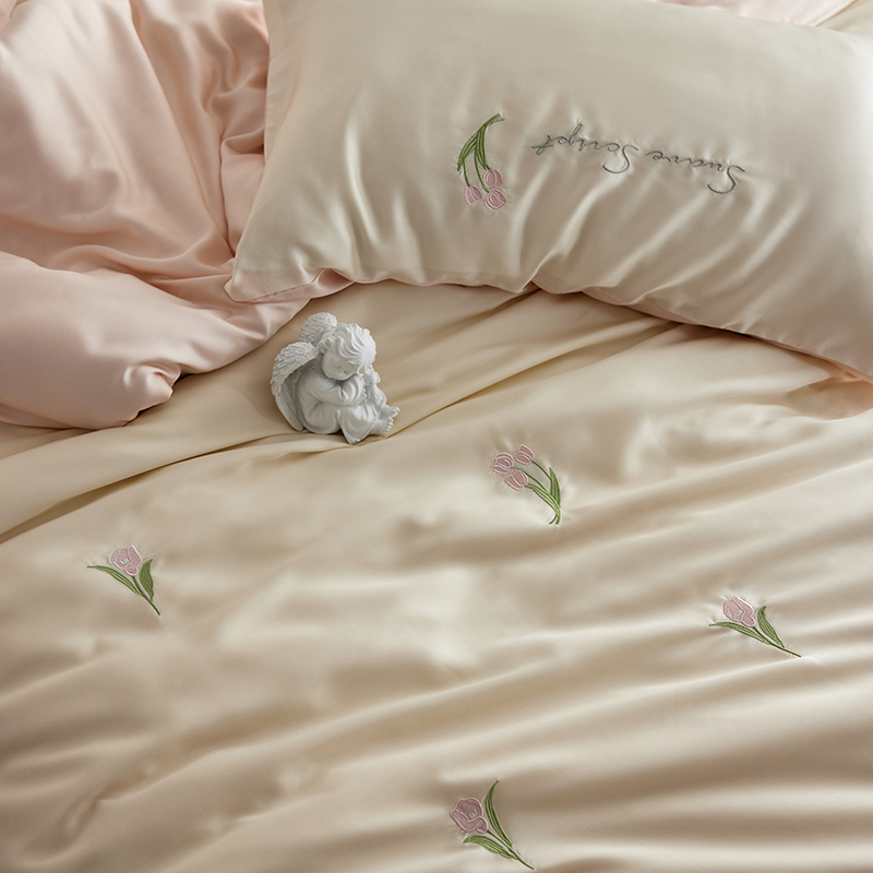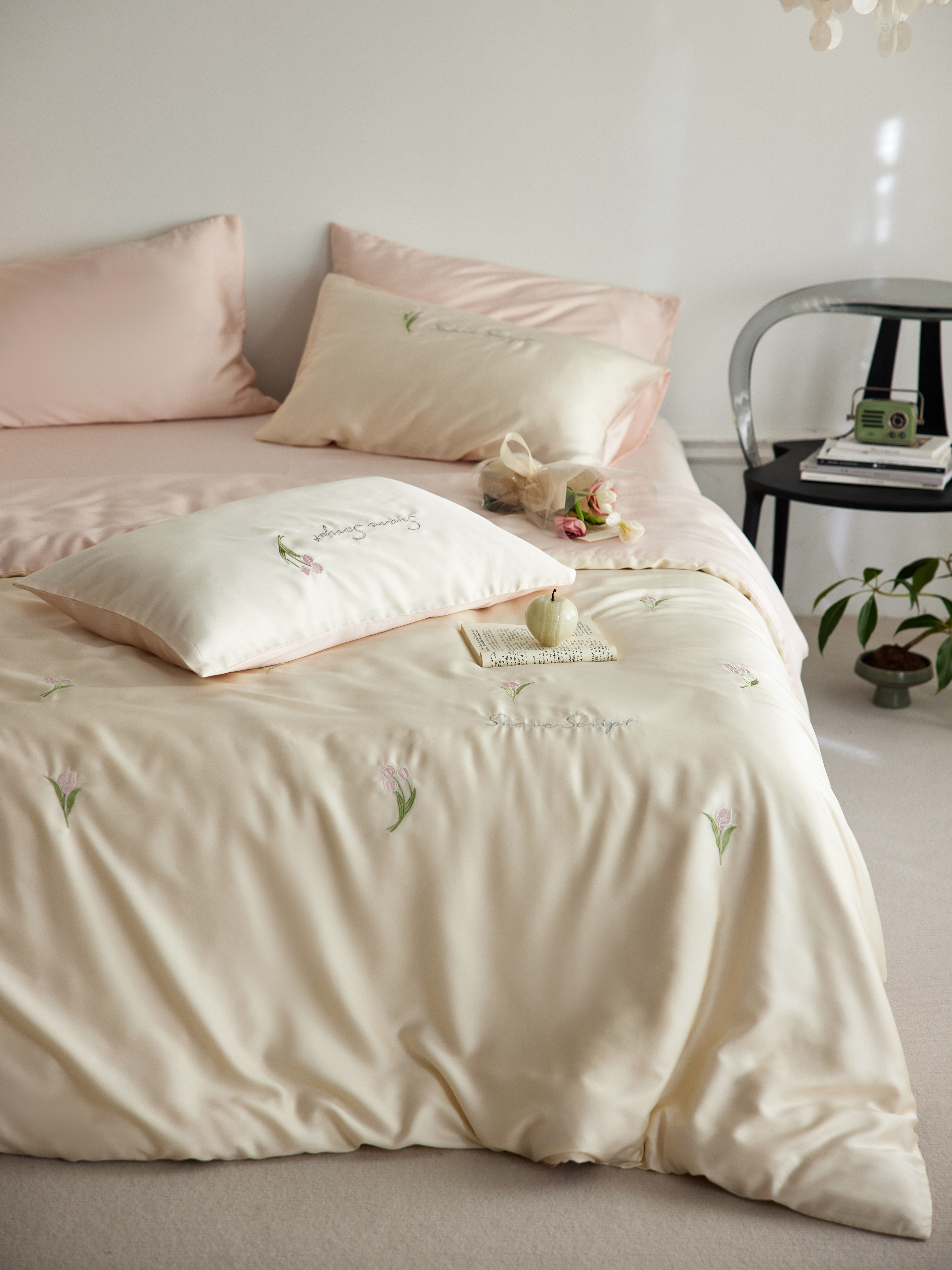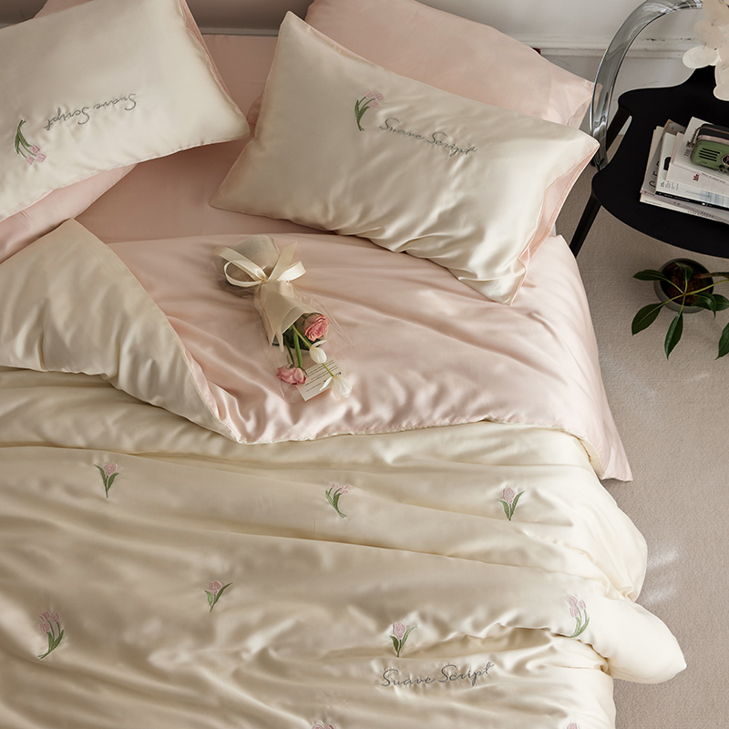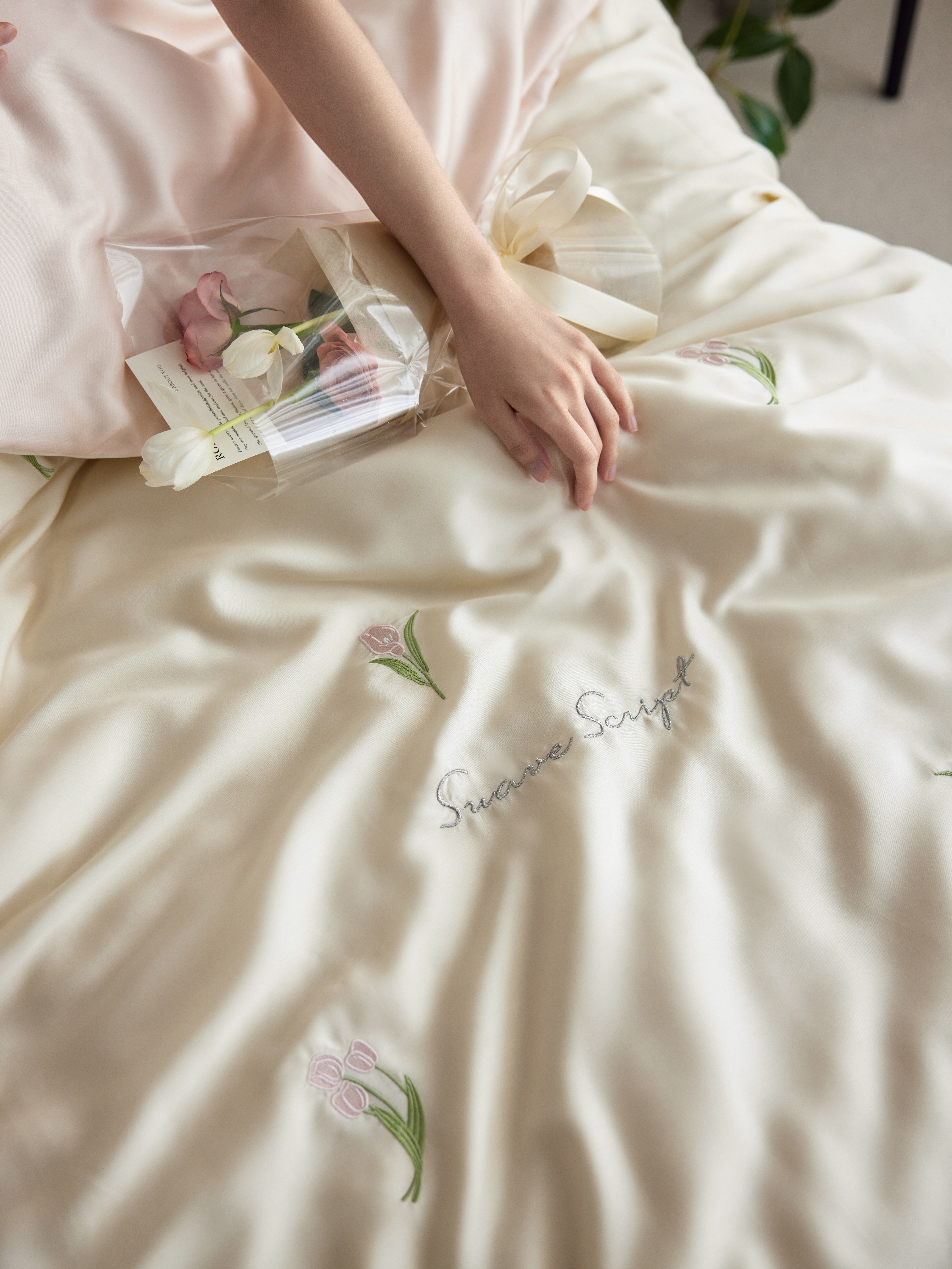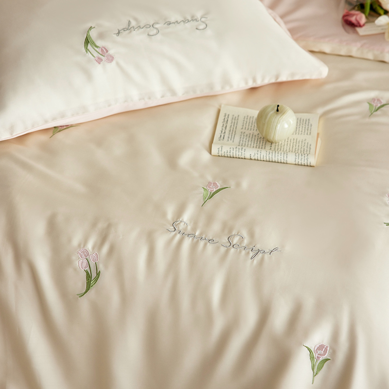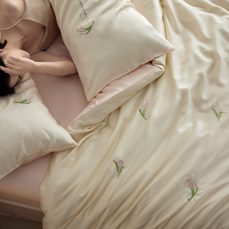 当前位置: 91家纺网 > 商品网购 > 床品套件 > 四件套 > 化纤普通四件套 > 初拾 2024新款A类天丝棉刺绣四件套-郁金香铃兰花场景二 郁金香-桃夭