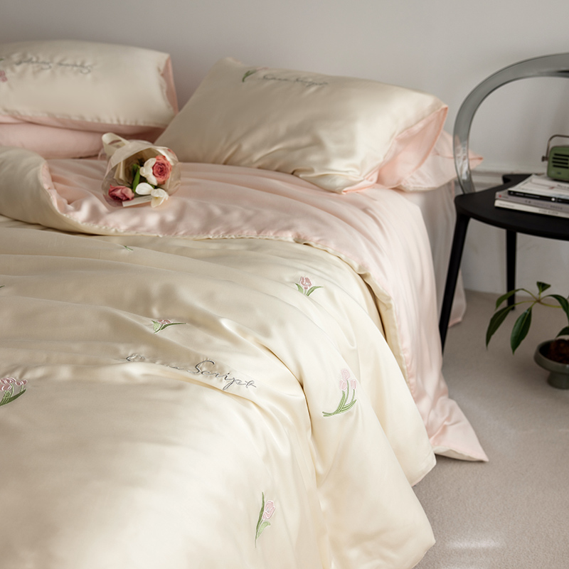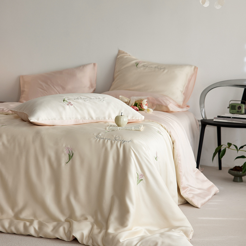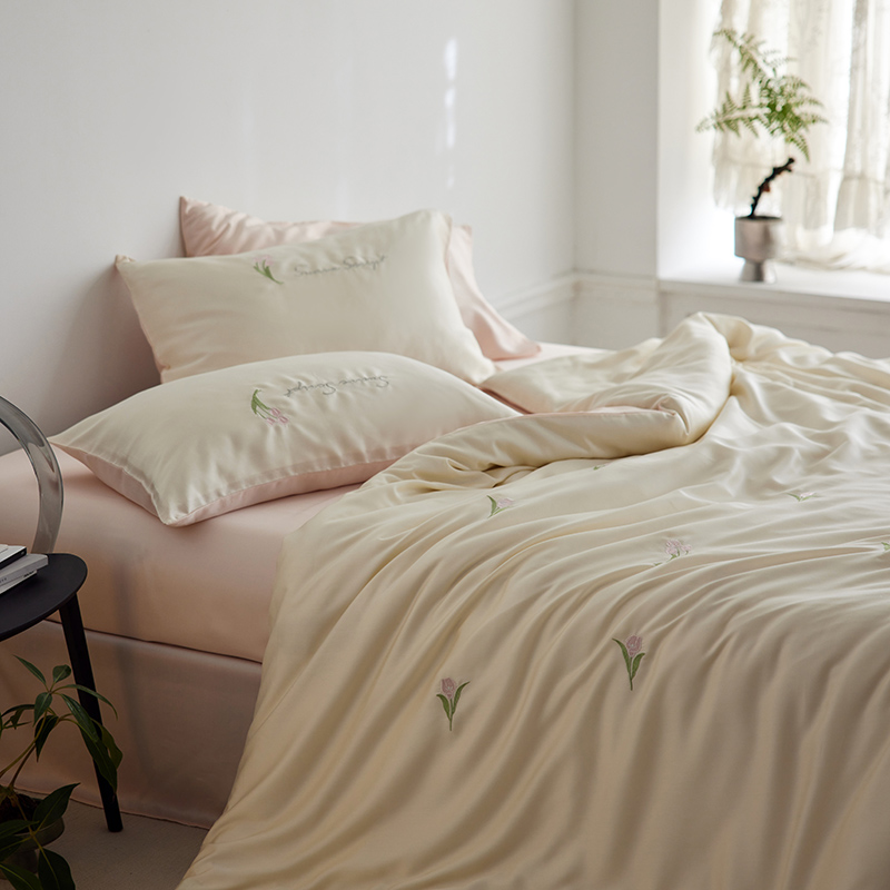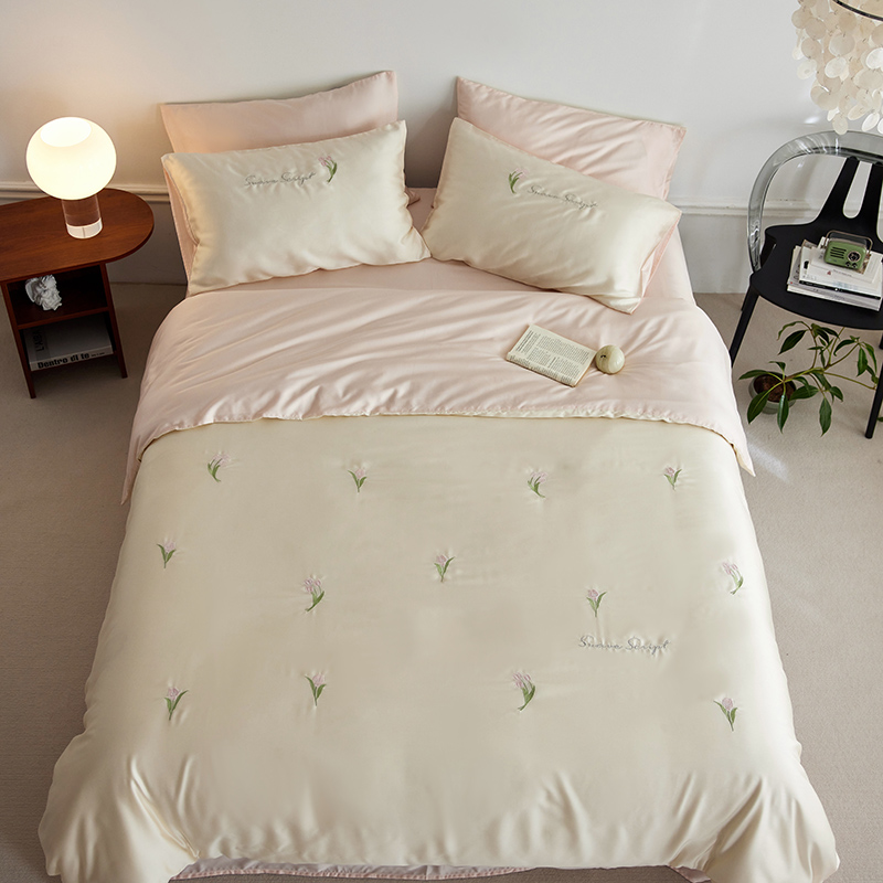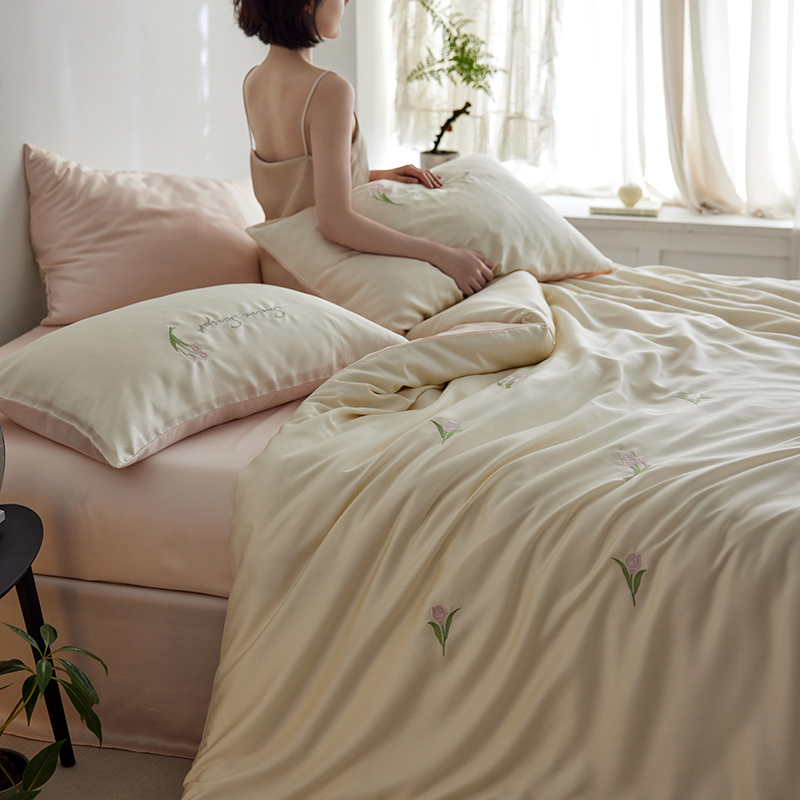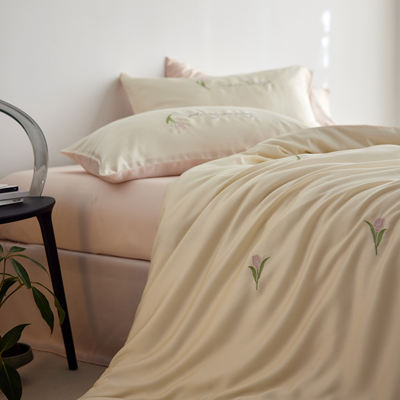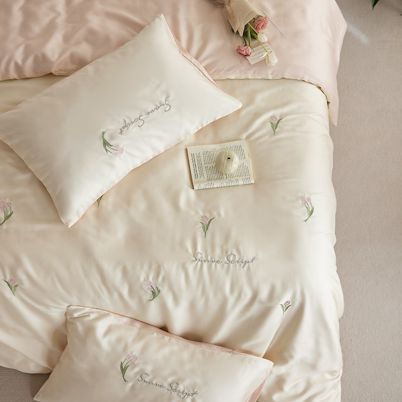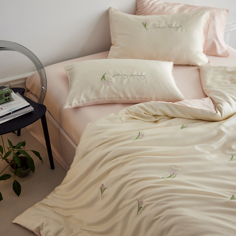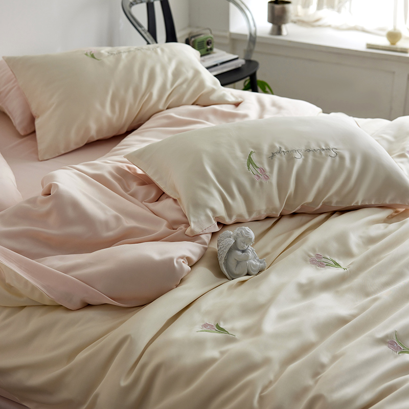 当前位置: 91家纺网 > 商品网购 > 床品套件 > 四件套 > 化纤普通四件套 > 初拾 2024新款A类天丝棉刺绣四件套-郁金香铃兰花场景二 郁金香-桃夭
