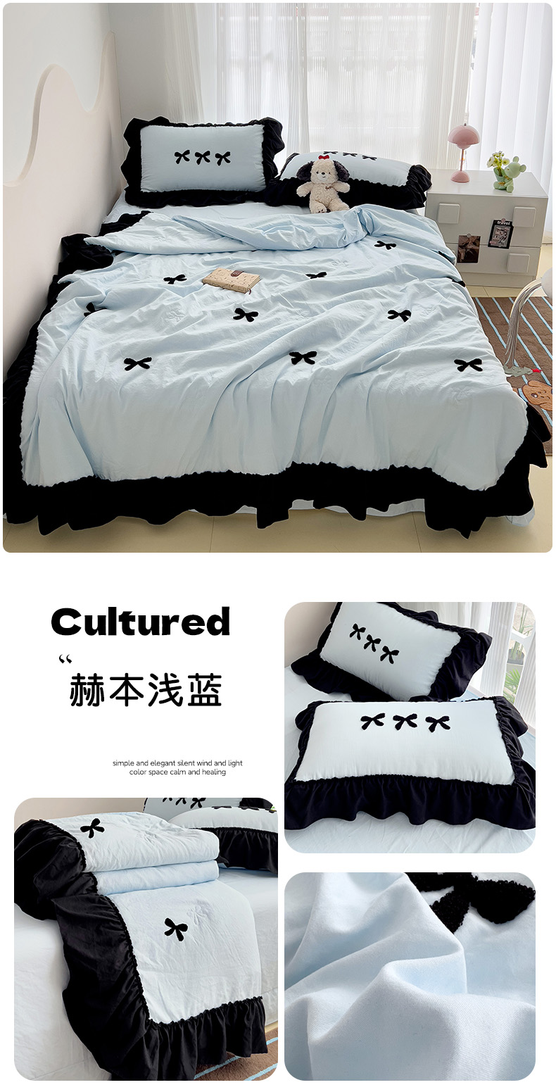 商品名称:富米莱(原臻工厂) 2024新款法式毛巾绣花边水洗夏被四件套 夏被赫本-浅蓝