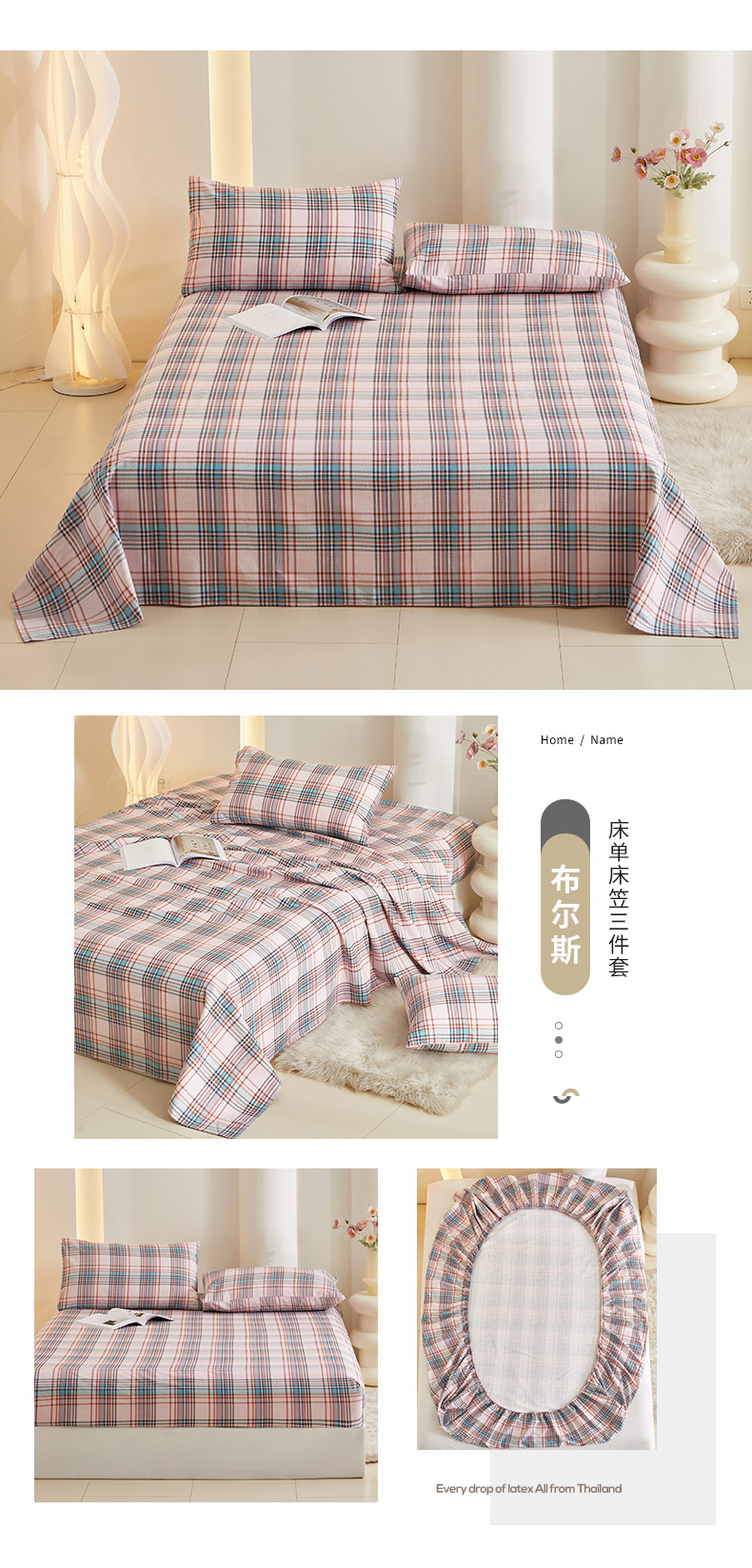 怡家居 2024新款A类老粗布枕套床单床笠单品组合三件套 布尔斯