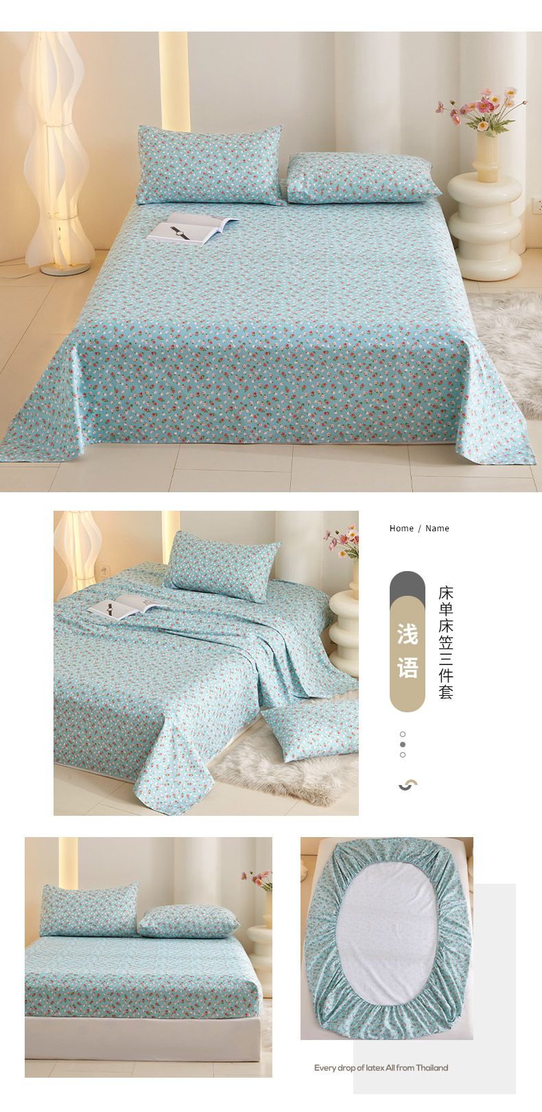 • 91家纺网 家纺一手货源 找家纺 怡家居 2024新款A类老粗布枕套床单床笠单品组合三件套 浅语